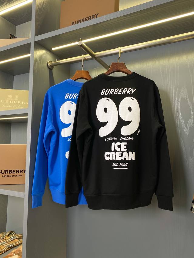 . This fleece cotton sweatshirt is a classic sweatshirt style, made from cotton fabric, and features eye-catching Burberry logo and ice cream pattern decorations. This exquisite piece is from Burberry's summer collection. It perfectly follows the Zg material thickness, resulting in a very strong sense of layering when worn, unlike the market version which uses very thin fabric and has no drape! This trendy and unique printed embroidery design perfectly showcases the Bur brand's presence, making it highly recognizable. The overall look is simple, sophisticated, and basic, with a relaxed fit that enhances its fashionable and high-street casual style! It features a high-weight fleece fabric, with the sweatshirt itself weighing a whopping 680 grams. The fleece lining adds a substantial feel, and the high-density fabric's texture is clearly visible. Softness and comfort are fundamental, but breathability and warmth are a pleasant surprise! It won't feel stuffy and is also windproof. The sweatshirt's genuine cost-effectiveness delivers a comfortable experience you can see and feel! The overall feel is extremely comfortable, with excellent skin-friendly properties. The OV fit is also perfect for various occasions. It's exceptionally stylish, with outstanding quality and charm, showcasing the brand's standards and your pursuit of fashion! Don't miss out on this amazing piece! Exclusive stock, exclusive resources, highly recommended! Good things speak for themselves; missing out would be a regret. We look forward to seeing how well our fans style them!
