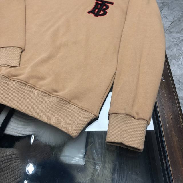 In stock, dropshipping available. Burberry latest sweatshirt. Exclusive logo series, ushering in a new era of understated luxury. Featuring exquisite embroidery of the exclusive logo, plus a secondary logo letter print on the back. Custom color matching, ribbed trim, and 32-count double-ply fine cotton fleece fabric. Comfortable, breathable, and fully washed, it won't deform! Excellent fit! Sizes M-XL DDD