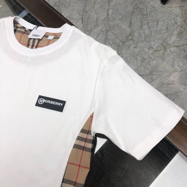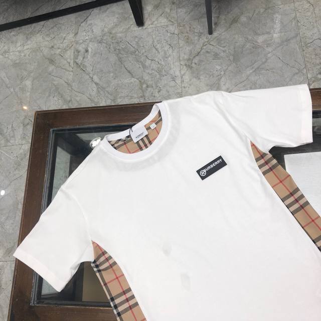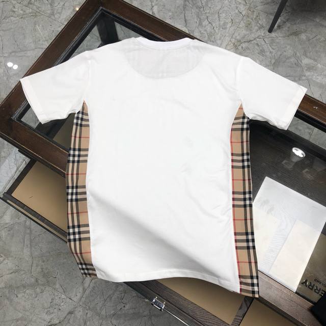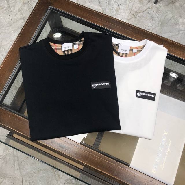 In stock, dropshipping available. New Burberry short-sleeved T-shirt, same style as the official website, original replica, high-end custom combed cotton fabric. Available in black and white, sizes M to 3XL.