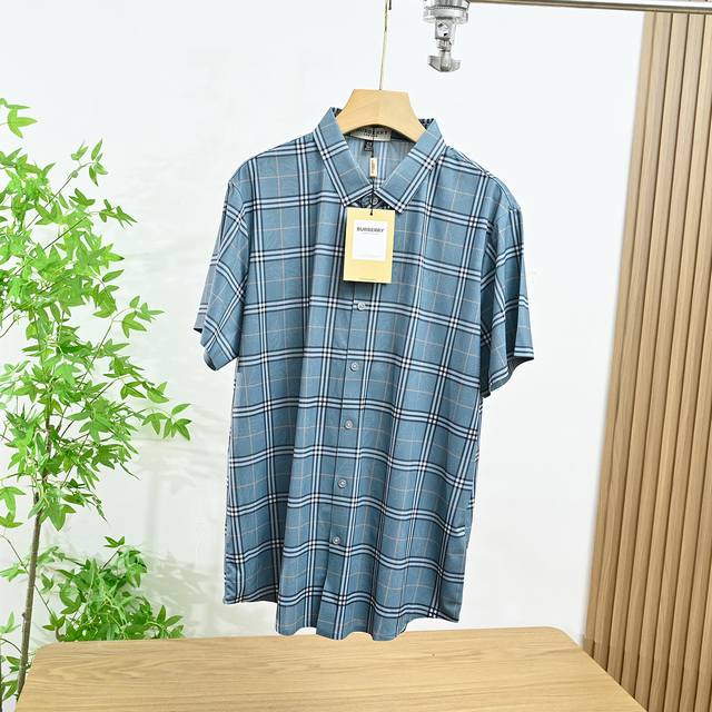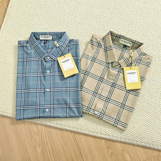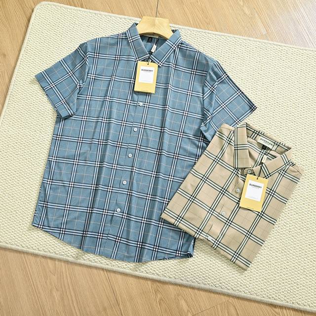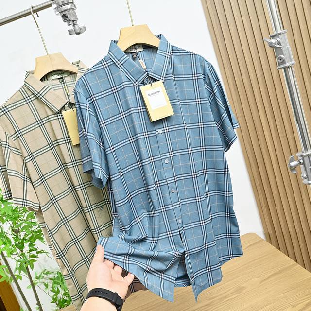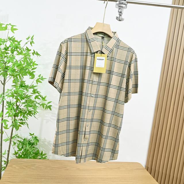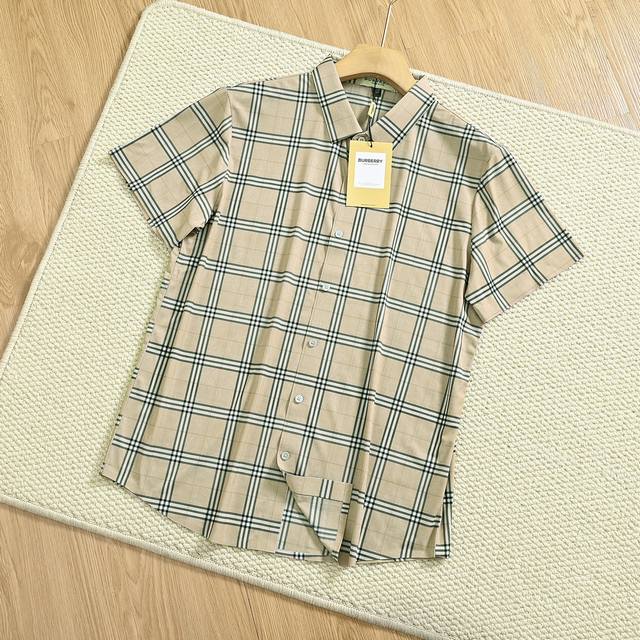 Burberry Tb 2025 Summer Classic Men's Business Fashion Plaid Short Sleeve Shirt!