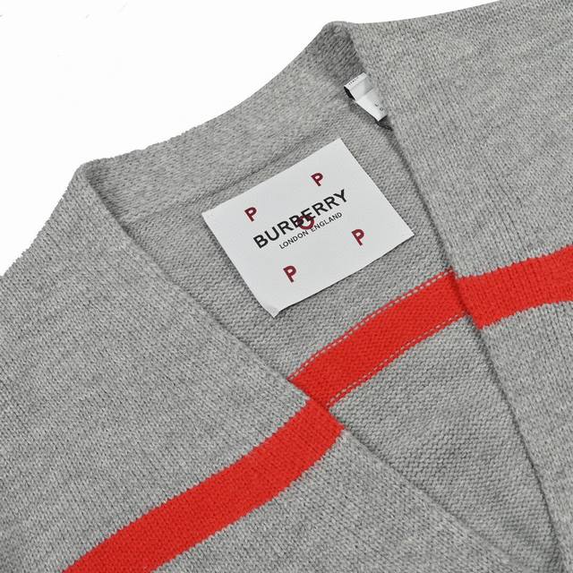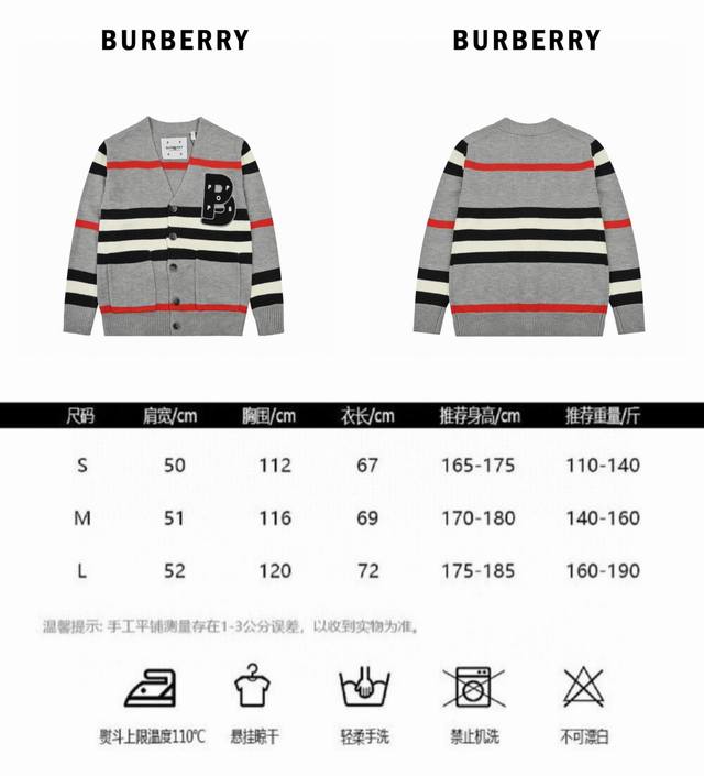 New arrival! Burberry Bbr 22Fw intarsia co-branded wool cardigan. Custom-dyed wool yarn, high wool content. 5-needle, single-flat magnetic star dual system. Custom-made badges differentiate the market from low-density badges. Buttons are shell-like, original molded, and custom-dyed. Washed and dyed. Sizes: S, M, L,