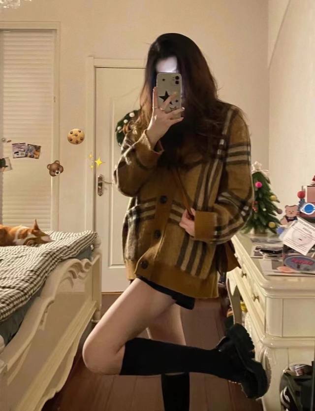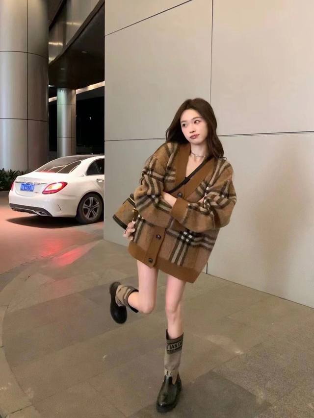 New Arrival! Burberry Plaid Cardigan! These long boots make you look so tall, who knows! A retro yet stylish plaid cardigan! I love this classic style! Wearing long boots with bare legs this spring is a perfect way to make your legs look longer! Color: Brown Sizes: S, M, L S Recommended Size: 80~ M Recommended Size: ~115 L Recommended Size: 115~135