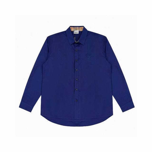Burberry solid color plaid patchwork Tb embroidered long-sleeved shirt