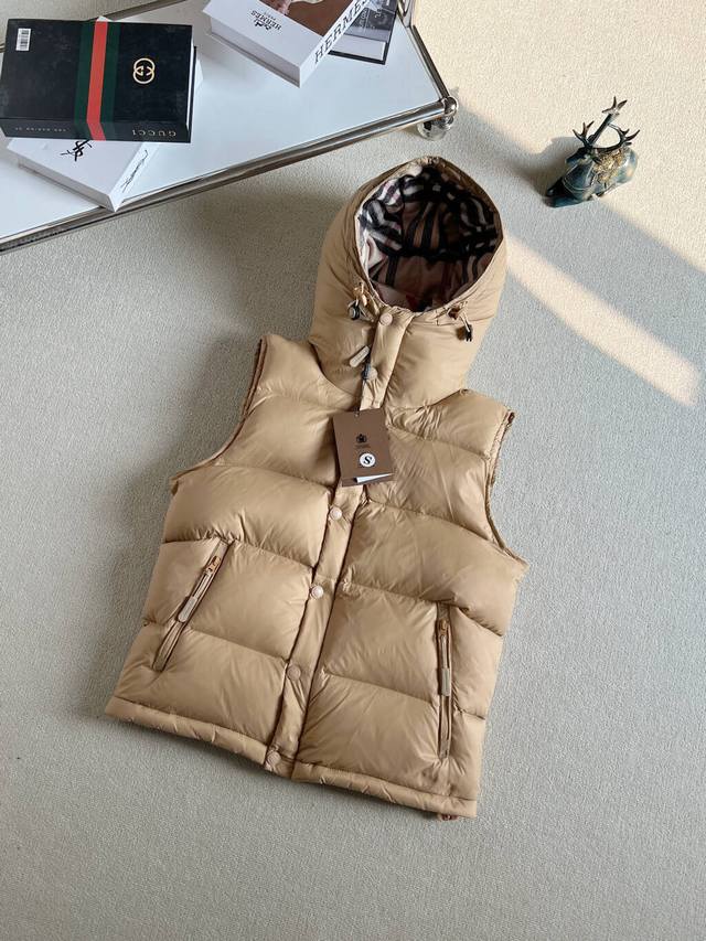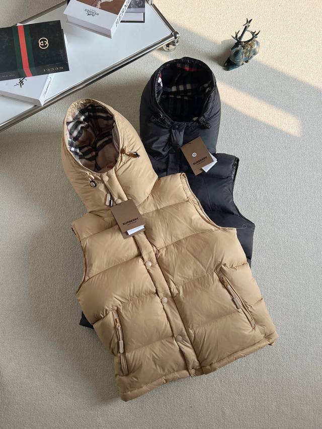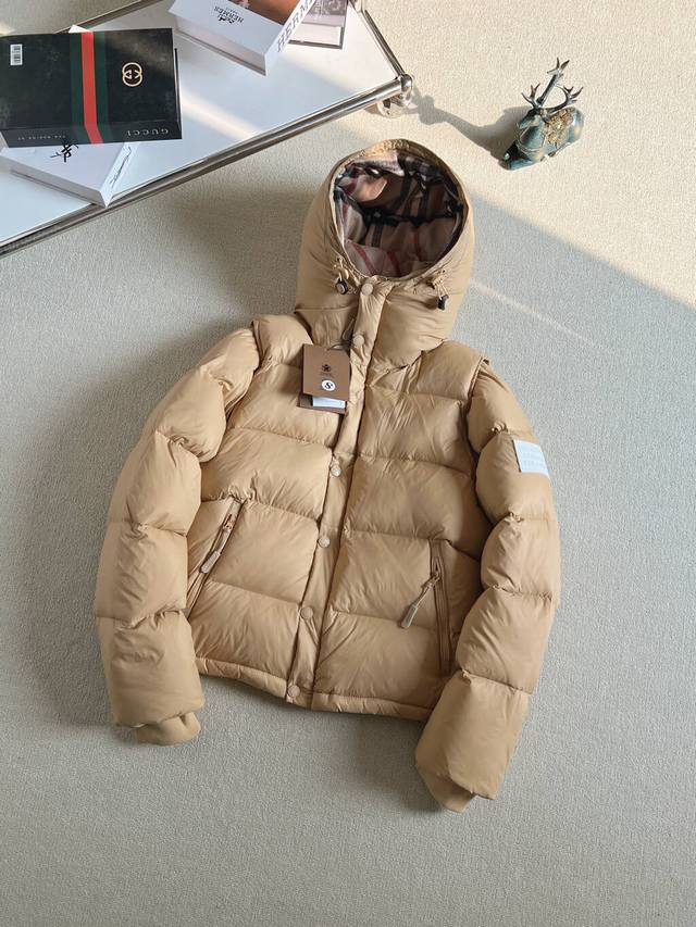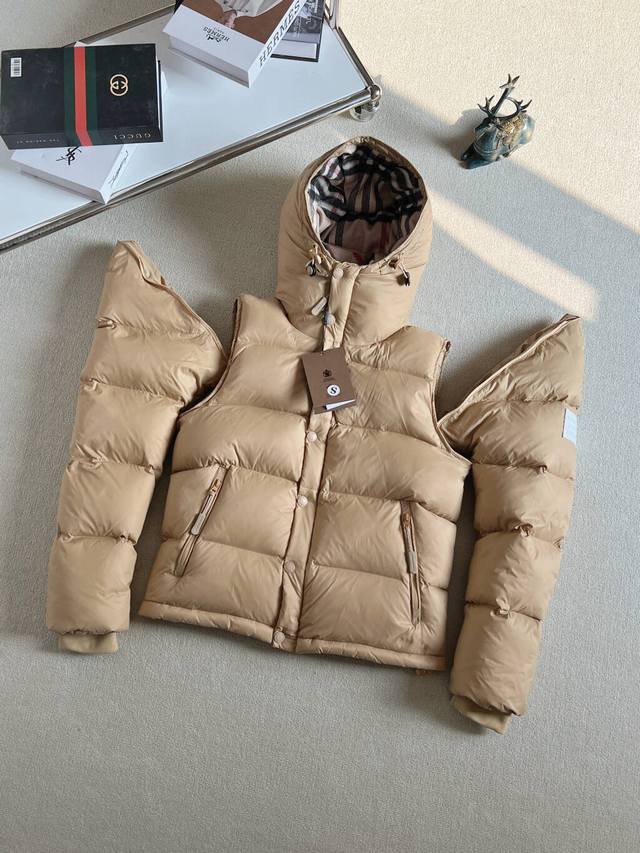 New Arrival Real Shots DDD Waterproof and Windproof High-Version Down Jacket Ddd In Stock Main Hot Selling Burberry Down Jacket Ddd Zhou Dongyu's Same Style Autumn and Winter New Arrival Detachable Sleeve Hooded Down Jacket Can Be Used as a Vest or an Outerwear! Exclusive original custom design, adhering to the original development and consistent with the original. Features include a Vintage plaid lining, a high collar and hood, detachable sleeves creating a vest-like look, super comfortable and warm, and can also be used as a vest