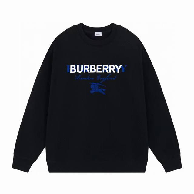 New Burberry Sweatshirt. Made with custom-woven and dyed 380g double-ply pure cotton terry fabric, original design with imported eco-friendly ribbed print, unisex style. Colors: Black, White. Sizes: M-3XL.
