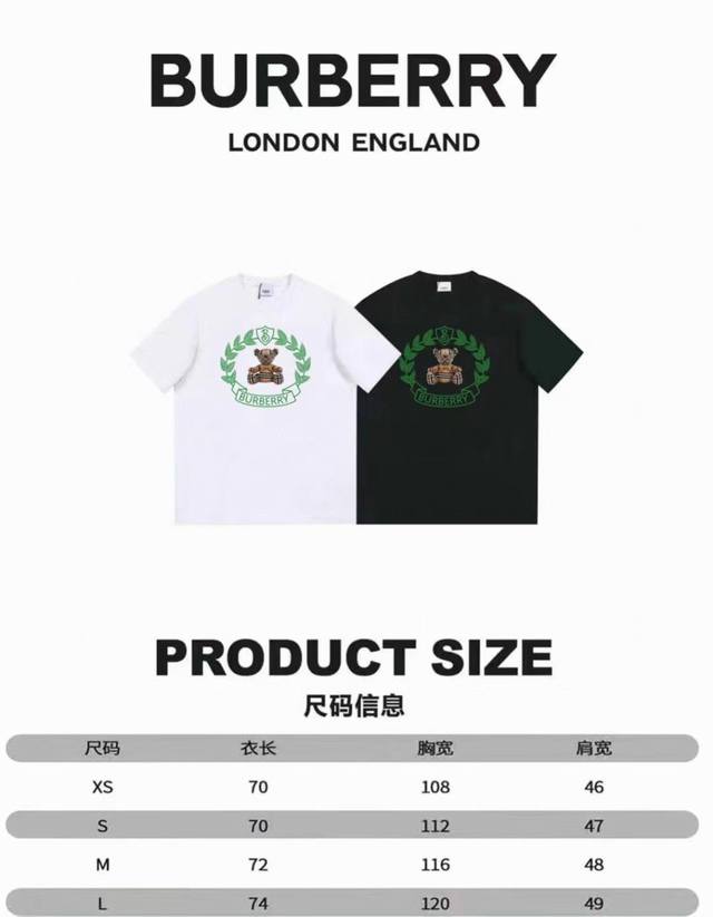 Ldurlderry Burberry 23Ss Bear and Logo white ink embossing process original fabric official same Ss new Ldldr short-sleeved T-shirt, customized 260G combed cotton cover cotton feels very soft and comfortable. Bear Logo pattern hot stamping on the chest, trendy, low-key and simple. Pure cotton fabric is comfortable, soft and breathable. It is very suitable for men and women.