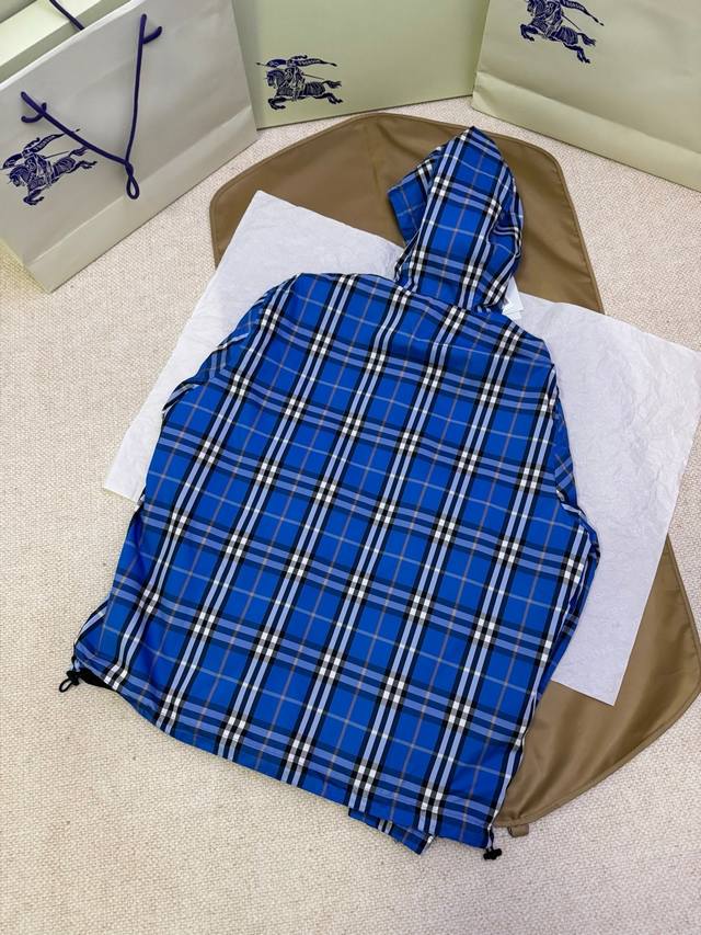 Nl Exclusive Original Development: Burberry Check Reversible Nylon Hooded Jacket. Craftsmanship: This jacket features a reversible design, combining a finely woven check fabric with nylon. The front displays the brand's classic check pattern, while the reverse side is solid nylon adorned with a vintage equestrian appliqu