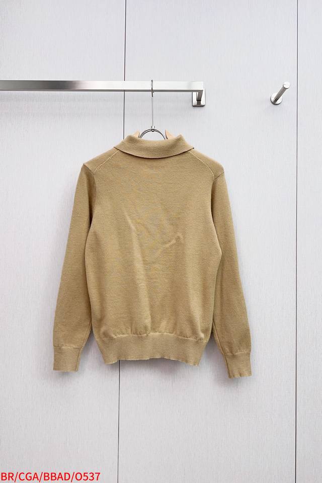 O537 Ddd Br Burberry Cross-Stitch Equestrian Logo Knit Long Sleeve Ddd Craftsmanship Description: This Burberry long-sleeve polo shirt is made from a lightweight cashmere blend plain weave fabric, providing a soft and comfortable wearing experience. The knit technique creates a slim fit that perfectly conforms to the body. The chest is adorned with a tonal equestrian knight logo embroidery (Ekd), subtly showcasing the brand's classic element. Buffalo horn button closures add a touch of sophistication, while ribbed knit trim enhances the overall refinement. The high-quality cashmere blend fabric combines warmth and breathability, making it suitable for various occasions. The slim fit showcases clean lines; sizing is standard, and we recommend choosing your usual size. The overall design continues the brand's consistent British style, perfectly combining traditional craftsmanship with modern tailoring. The exquisite equestrian knight logo embroidery highlights the brand's century-long history. This polo shirt is suitable for both business occasions and casual wear, showcasing an elegant and effortlessly stylish attitude. Ddd Colors: Black, Navy Blue, Khaki Ddd Sizes: Smlxlxxl All Labels Included Ddd