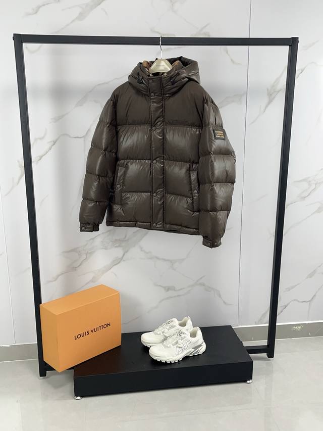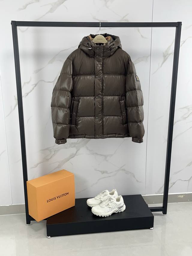 Premium Down Burberry 076 Color-Blocked Rubber Strip Logo Hooded Down Jacket. Features a classic check lining and looks absolutely stunning. Filled with premium goose down for an incredibly full look. Highly recommended! The fabric is made with the new 24-tech ultralight and tear-resistant material. The lining is filled with 135W+ ton of ultralight goose neck down, with zero down fibers. It's incredibly lightweight. Product Description: This down jacket is crafted from protective ultralight and tear-resistant nylon fabric. It's filled with goose down and insulating fibers, and features Burberry's new color-blocked rubber strip logo on the shoulder. The inner collar and placket are adorned with Burberry's classic check pattern, making it highly recognizable. The ultralight goose neck down lining adds warmth to cold winters. This jacket is from Burberry's classic check collection, a wardrobe essential that embodies the brand's distinctive style. Ddd