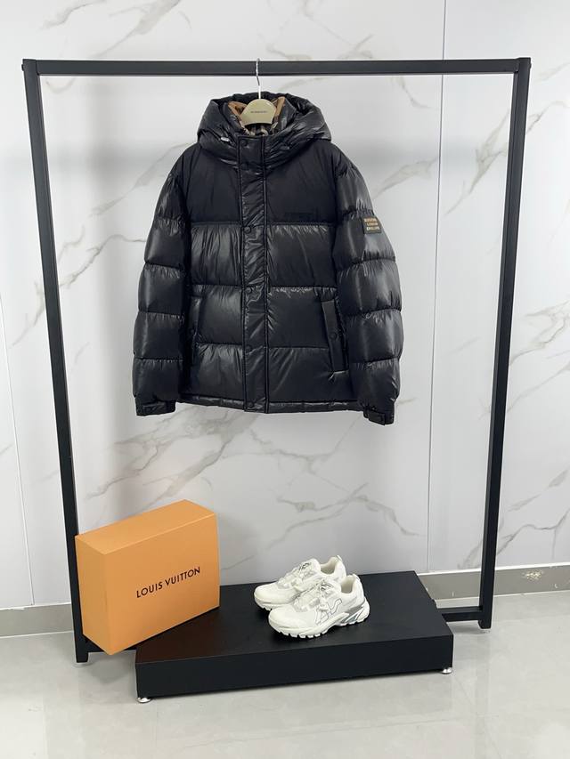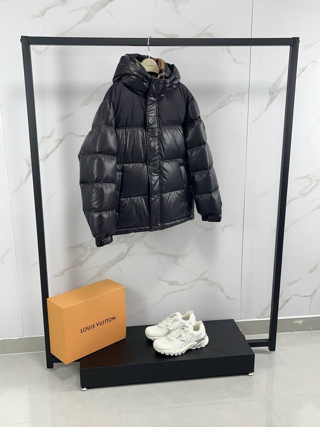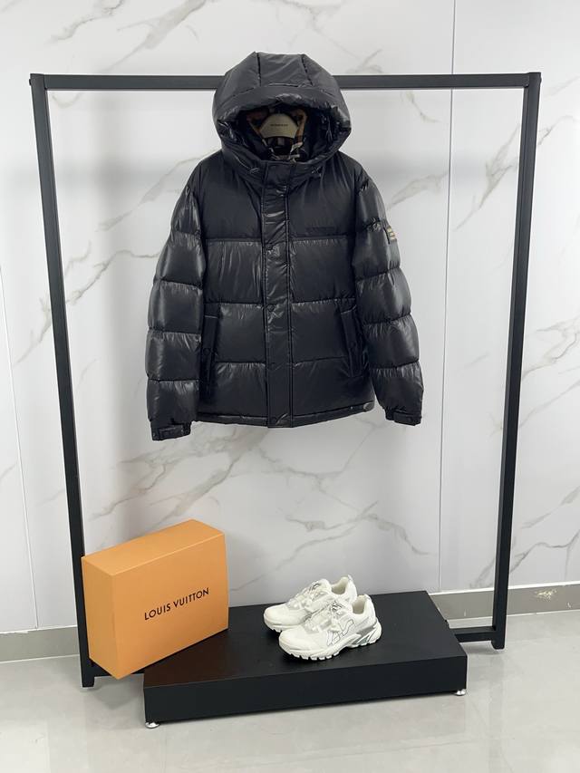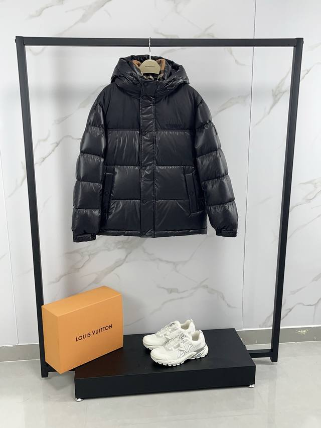Premium Down Burberry 076 Color-Blocked Rubber Strip Logo Hooded Down Jacket. Features a classic check lining and looks absolutely stunning. Filled with premium goose down for an incredibly full look. Highly recommended! The fabric is made with the new 24-tech ultralight and tear-resistant material. The lining is filled with 135W+ ton of ultralight goose neck down, with zero down fibers. It's incredibly lightweight. Product Description: This down jacket is crafted from protective ultralight and tear-resistant nylon fabric. It's filled with goose down and insulating fibers, and features Burberry's new color-blocked rubber strip logo on the shoulder. The inner collar and placket are adorned with Burberry's classic check pattern, making it highly recognizable. The ultralight goose neck down lining adds warmth to cold winters. This jacket is from Burberry's classic check collection, a wardrobe essential that embodies the brand's distinctive style. Ddd