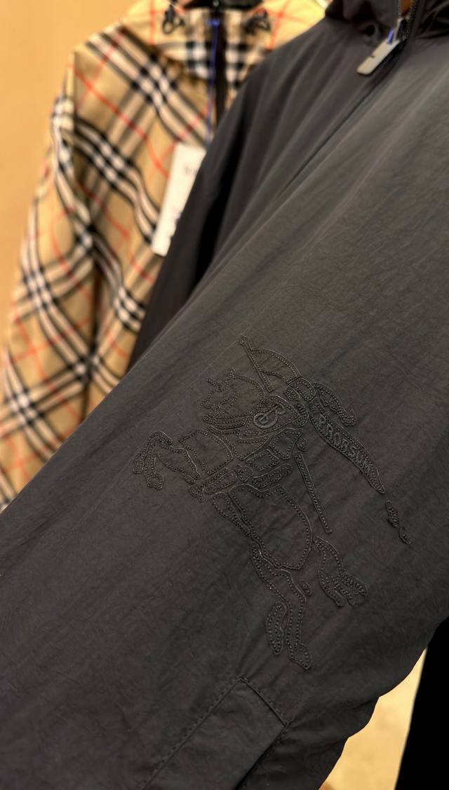 Premium Version Zp Version, any version on the market. Matching plaid pattern. Burberry official website style, classic double-sided reversible plaid trench coat with equestrian embroidery. Custom-made with Yb mold, consistent fabric details, and complete accessories. Distinguished from common market goods. Welcome to compare. Color: Black. Sizes: S, M, L, XL, XL.