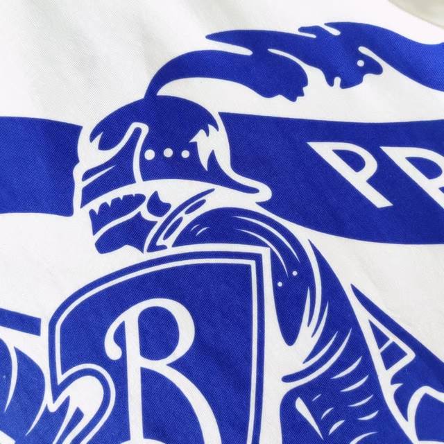 Real shot details + size chart. Burberry classic equestrian logo print short-sleeved shirt. Inspired by 80s retro style. Original fabric, same style as the official. Custom-dyed fabric with a very comfortable feel. New spring/summer style, fashionable and unique, super versatile and good-looking. Suitable for both men and women, a must-have. All tags, labels, and washing instructions are included. Colors: Black, White. Sizes: S-XL.