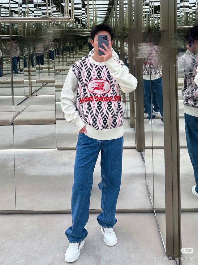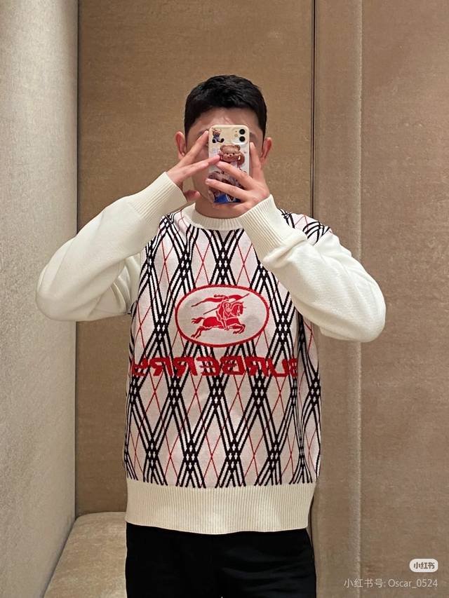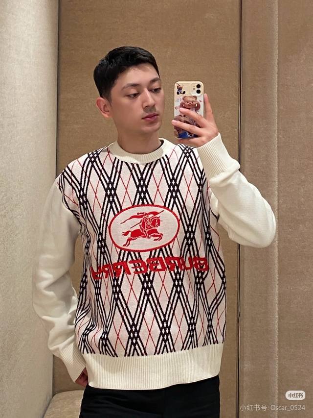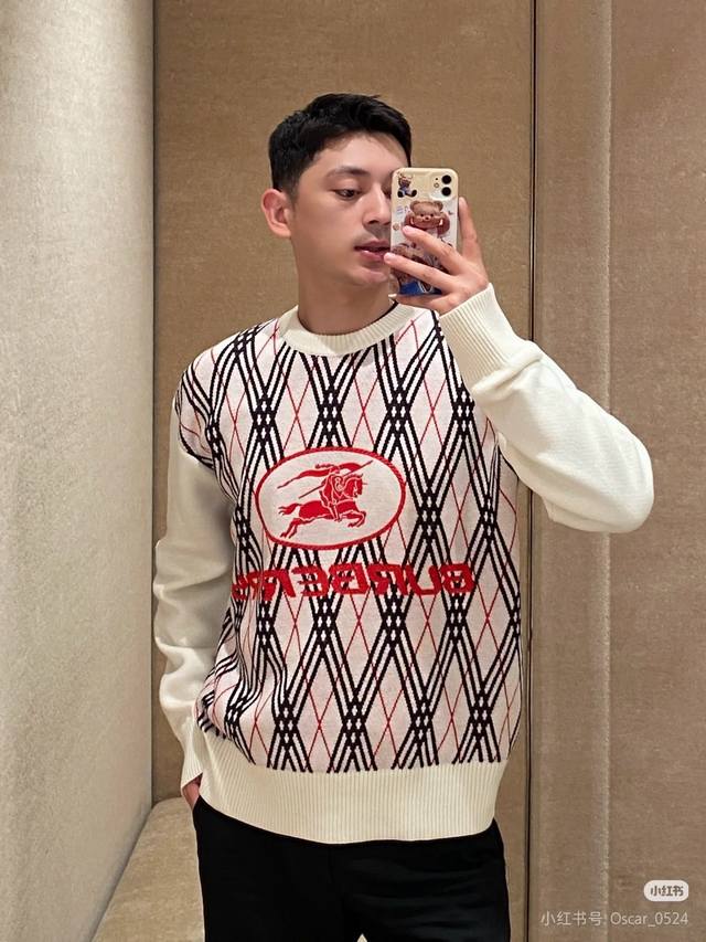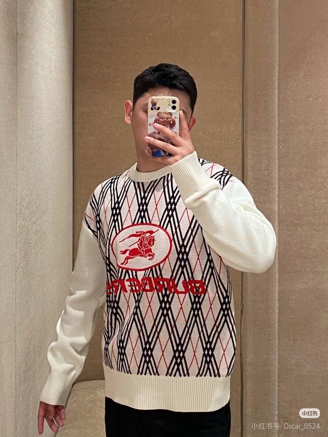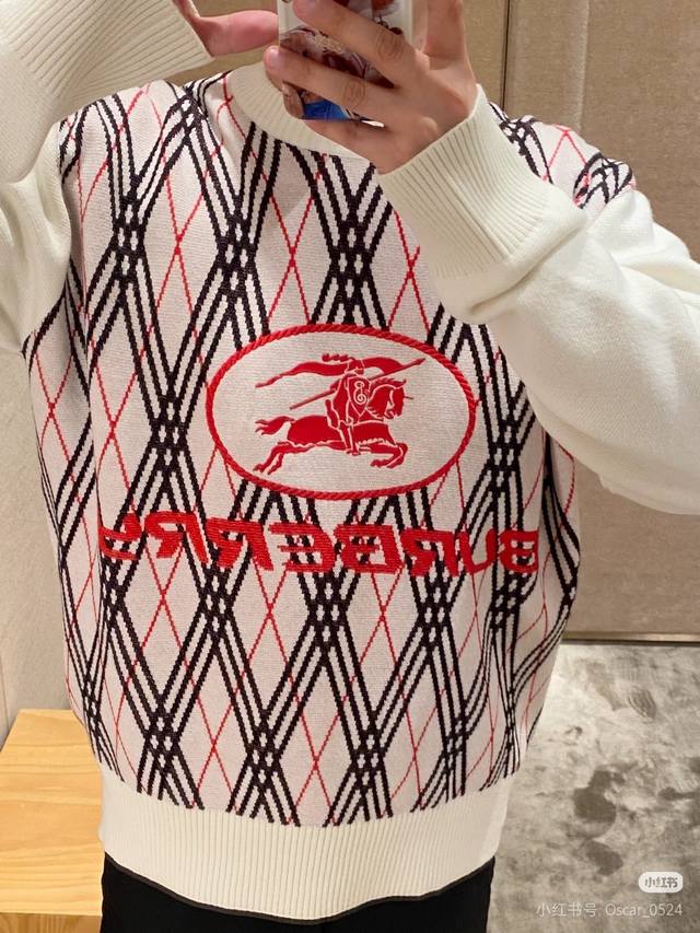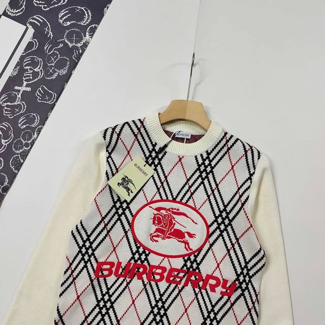 25Fw new Burberry sweater for autumn and winter, classic war horse jacquard pullover round neck sweater