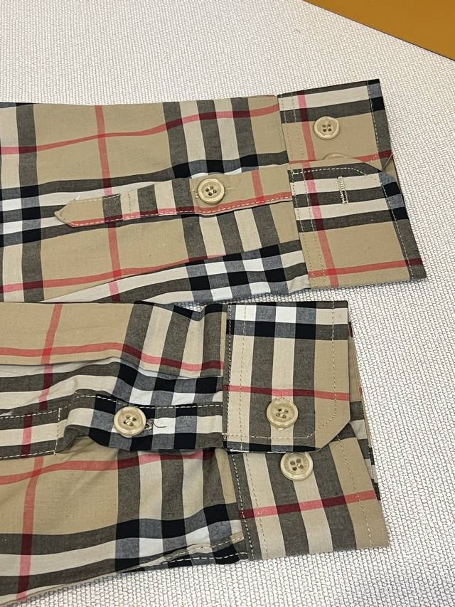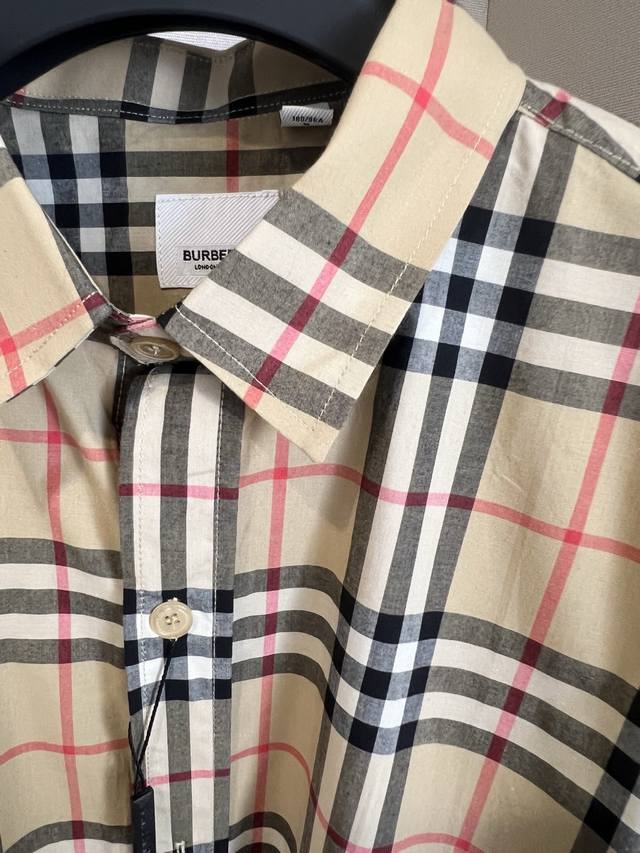 Size: Xs SML Single color unisex Burberry classic check shirt, classic check basic long-sleeved shirt, classic color that never goes out of style. Crafted from select cotton poplin fabric, with shell buttons bearing the Burberry logo, the details are impeccable. No one can resist the fashionable experience brought by the Burberry check, especially with the addition of a unique London print at the hem, exuding authentic British style. Nothing can enhance your aura better than this classic royal brand! Washing instructions: Dry clean or machine wash quickly in cold water, wrapped inside out in a laundry bag!