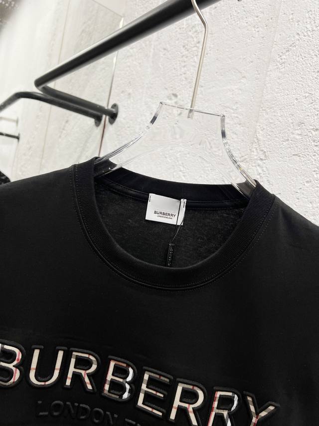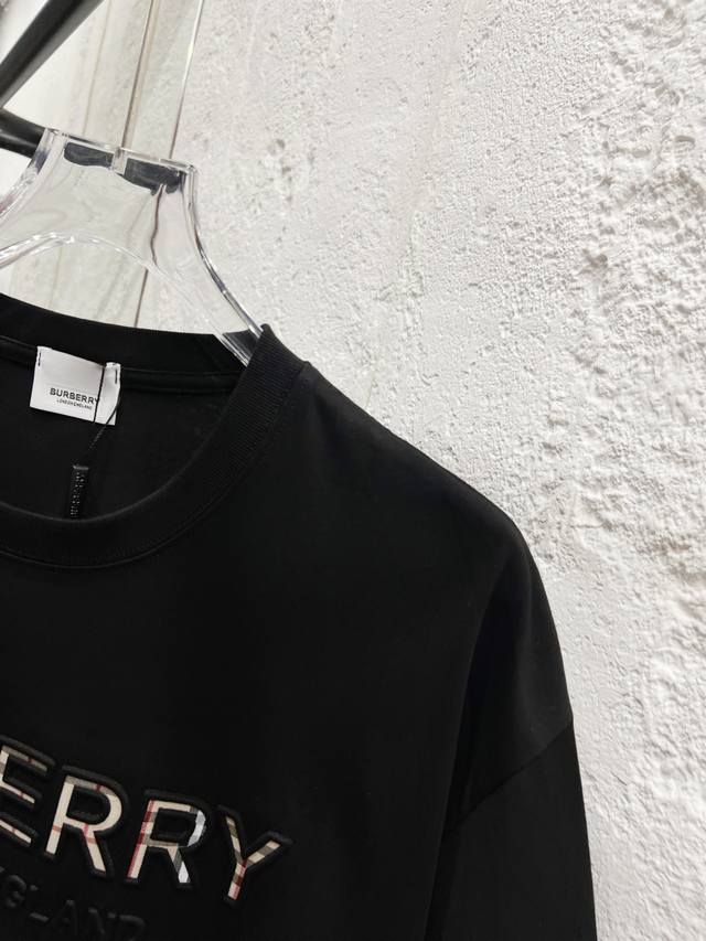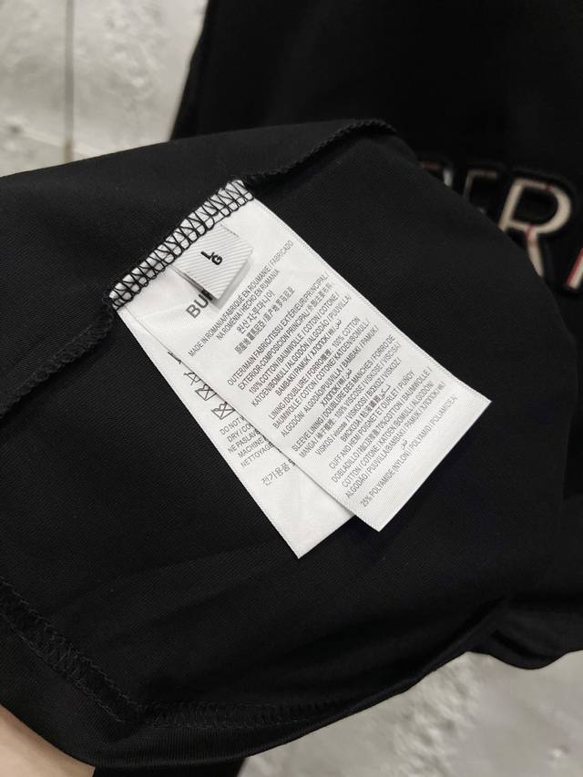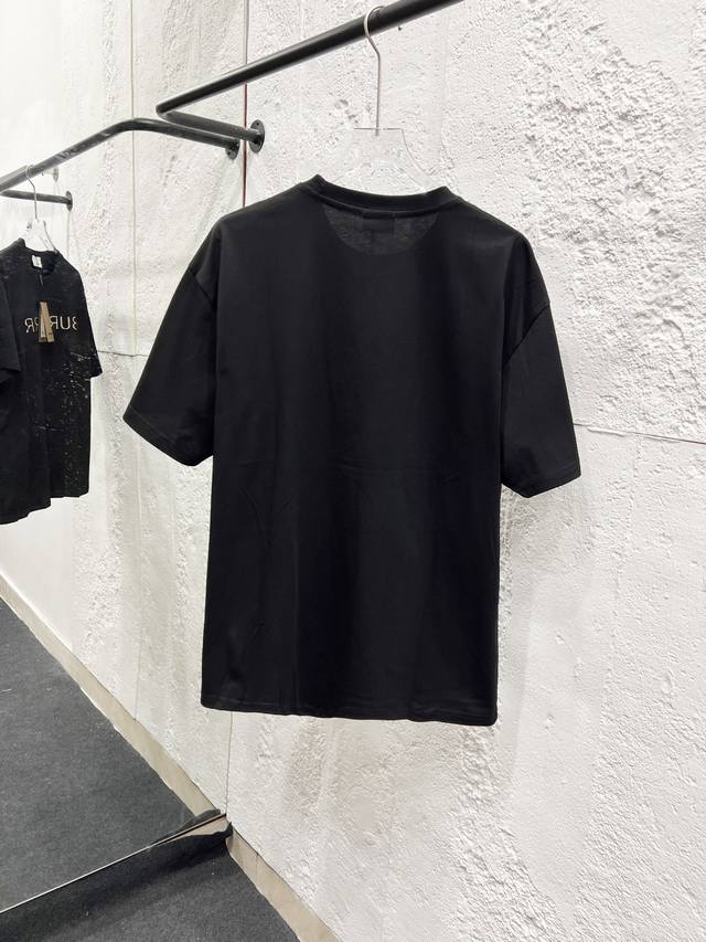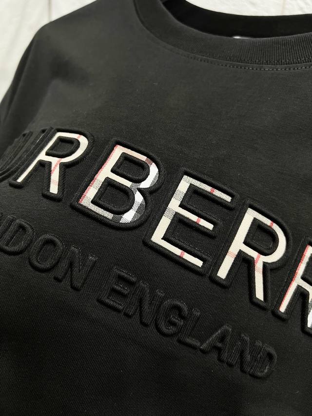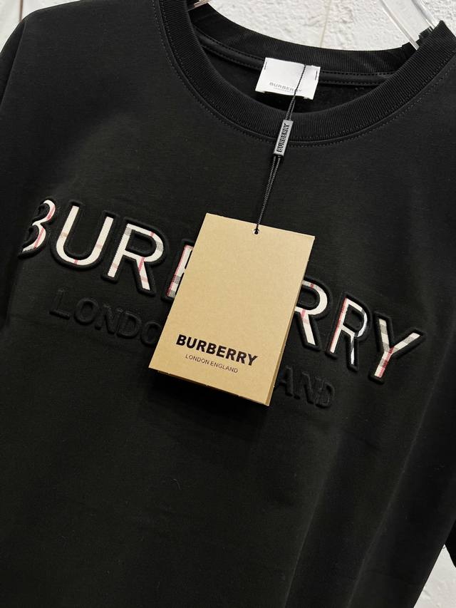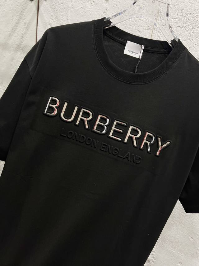 Style No.: T51 Burberry & Burberry Fw25 Round Neck Short-Sleeve T-Shirt with Embroidered Letters on the Chest , Unisex. Friends, I can't wait to share this Burberry 2025 Spring/Summer new short-sleeve round neck T-shirt. Its design is super avant-garde, and the brand logo has been heavily processed, making it very eye-catching. Made of high-end custom mercerized cloud cotton fabric, it's soft and skin-friendly, and super comfortable to wear. The exquisite stitching is of boutique quality, with superb attention to detail. The classic black and white colors are versatile and stylish, making it a true fashion treasure! 290G Double Yarn Ribbed Washing Label Accessories. Size: Xs-SML. Color: Black.