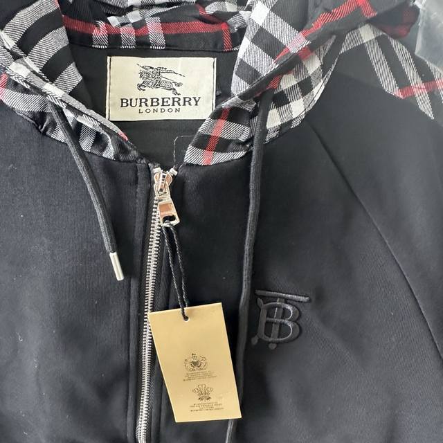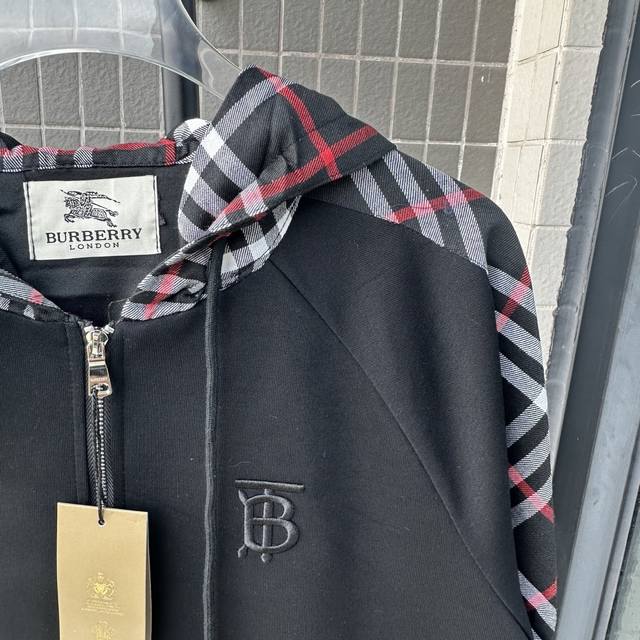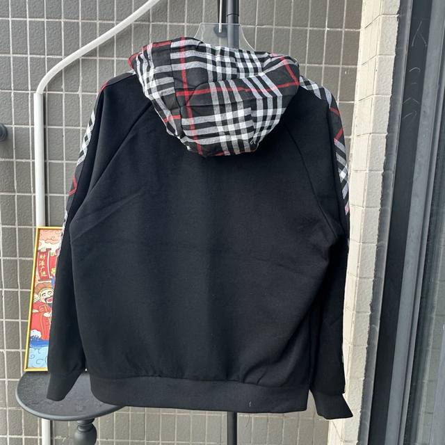 Style Number: Tt115 Burberry Embroidered Logo Patchwork Plaid Zip-Up Hooded Sweatshirt Jacket. This jacket features a simple patchwork design that will never go out of style. Stylish, sophisticated, and versatile, it's a must-have casual jacket that can be both sweet and edgy. Unisex. The classic plaid design on the sleeves is incredibly appealing and requires minimal styling effort. Colors: Black, White. Sizes: S-XL.
