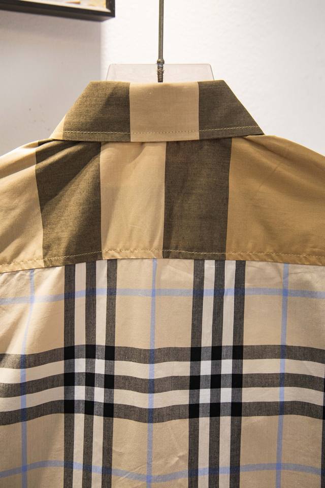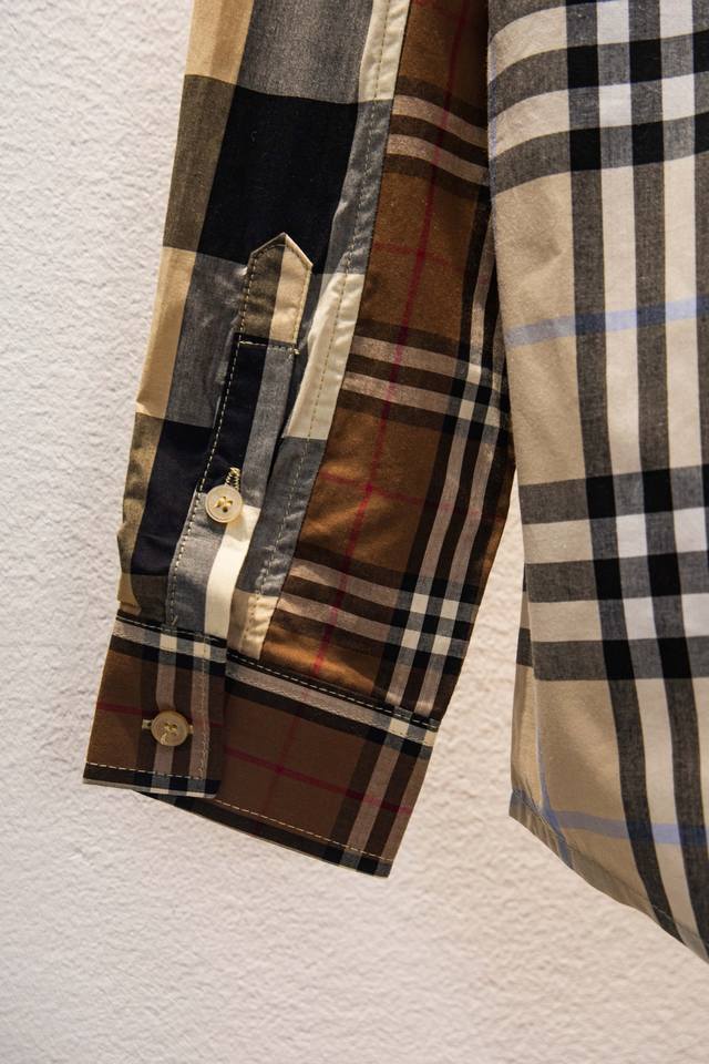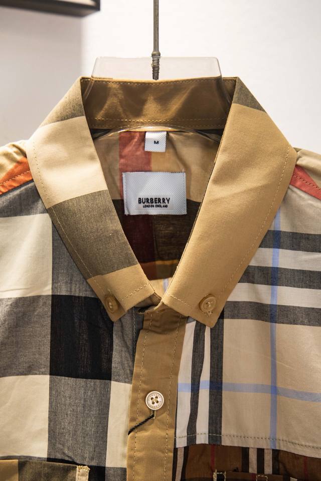 Burberry's new early spring patchwork men's business shirt, same style as the official website.
