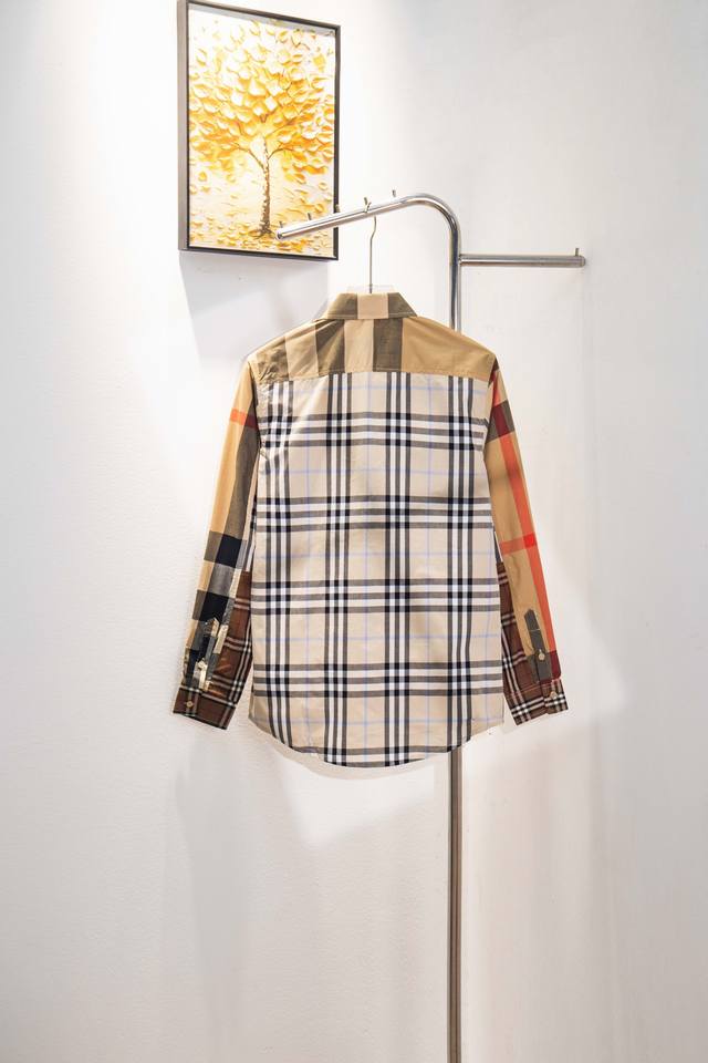 . Extensive patchwork fabrics! This long-sleeved, no-iron business shirt is silky and premium. It's a casual, seamless Burberry shirt, perfect for all seasons and available long-term. Available simultaneously on the Burberry official website. This latest men's plaid shirt features near-perfect craftsmanship. Made from custom-made fabric, this genuine Burberry brand fabric boasts a fine, silky texture and a smooth hand. Made from 95.3% polyester and 4.7% spandex, it undergoes multiple processing steps for wrinkle resistance, shape retention, and colorfastness.