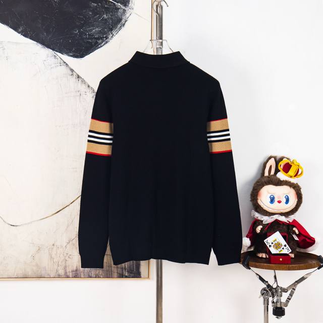 Burberry Autumn/Winter New Knitted Elastic Lapel Long-Sleeve Men's Fashion Striped Color Block Ultra-Lightweight and Breathable Knitted Polo Shirt! For a youthful and energetic look in autumn and winter, a polo shirt is a must-have. A classic and timeless basic, it's an essential men's wardrobe staple. Whether for business or leisure, it effortlessly transitions between various styles, perfectly suited to any occasion and body type! Extremely cool and comfortable in summer, the fabric is smooth and comfortable to the touch, lightweight and breathable, keeping you cool and comfortable against the skin without feeling stuffy. The workmanship and stitching details are exquisitely perfect, making it a top choice for men's high-end style!