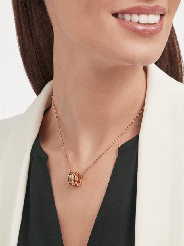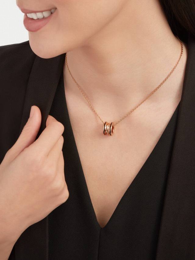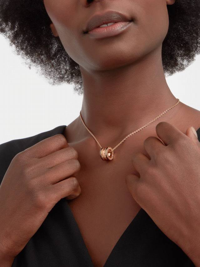's B.Zero1 necklace draws inspiration from the world-renowned Roman amphitheater, the Colosseum, a true reflection of Bulgari's creative vision, challenging the very essence of jewelry design. Its unique, pure spiral shape symbolizes the harmonious continuity of past, present, and future, embodied in the splendor of the Eternal City and the collection's pioneering spirit. This B.Zero1 pendant is crafted from 18k rose gold. While expensive in the store, it's incredibly popular and often sold out. A timeless design. Classic, timeless, and incredibly flattering! Too beautiful to take off.