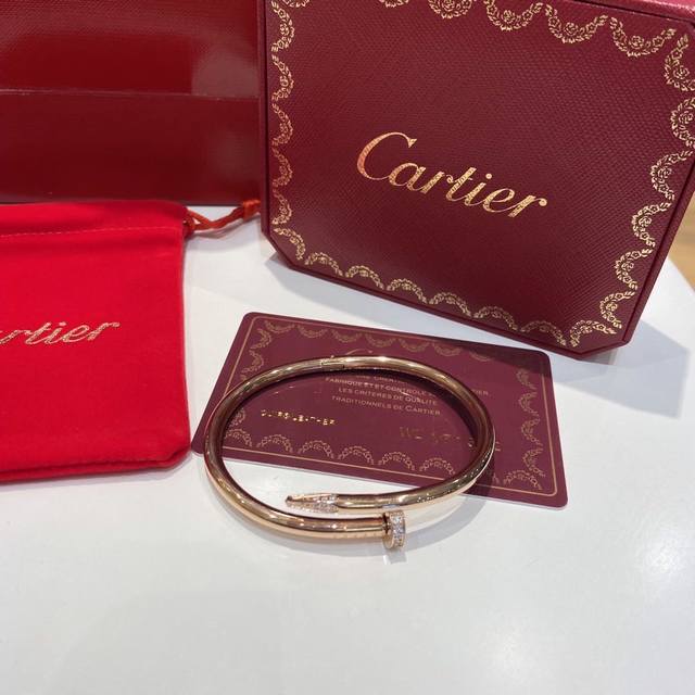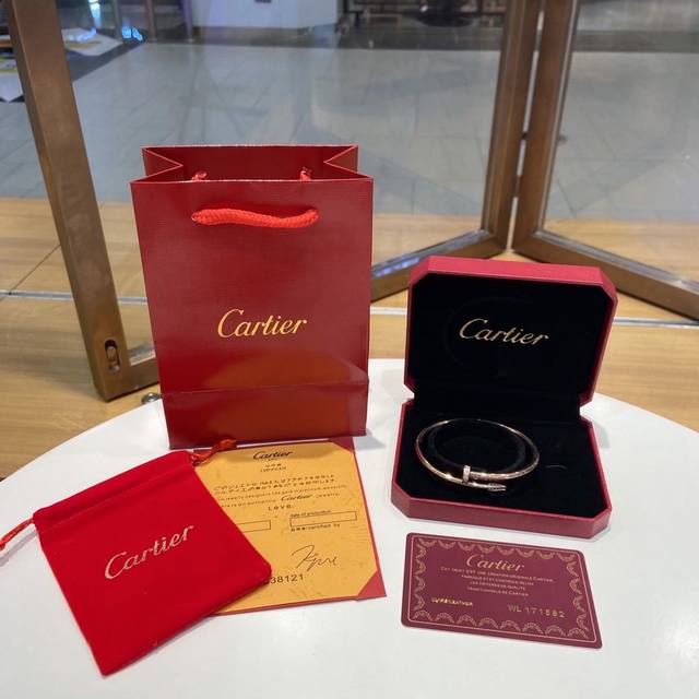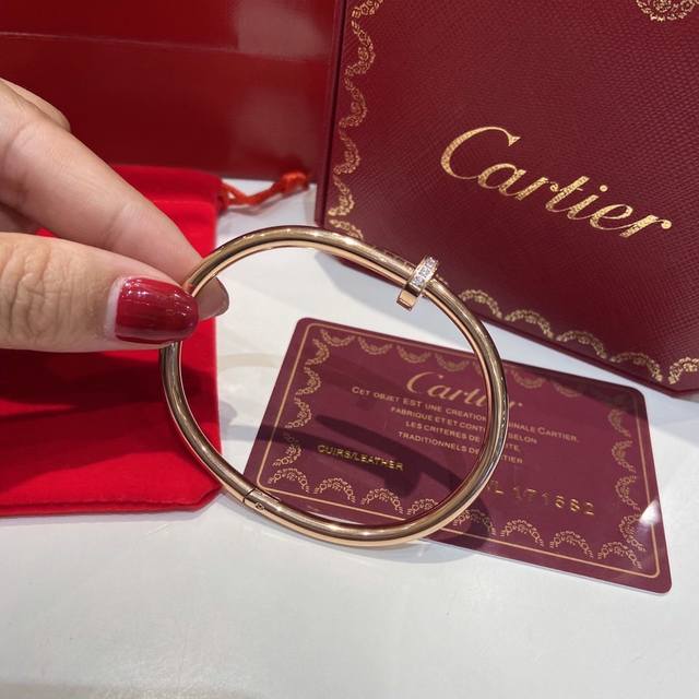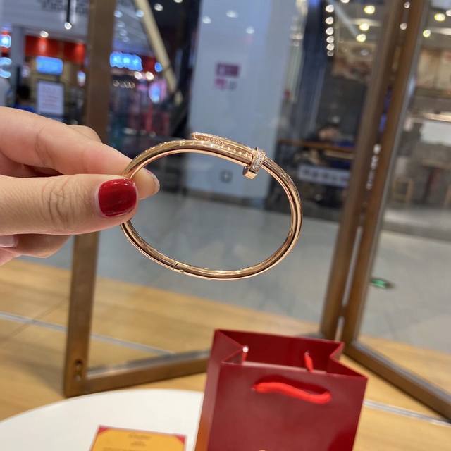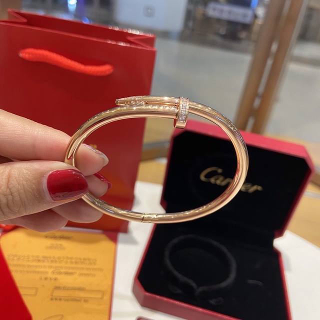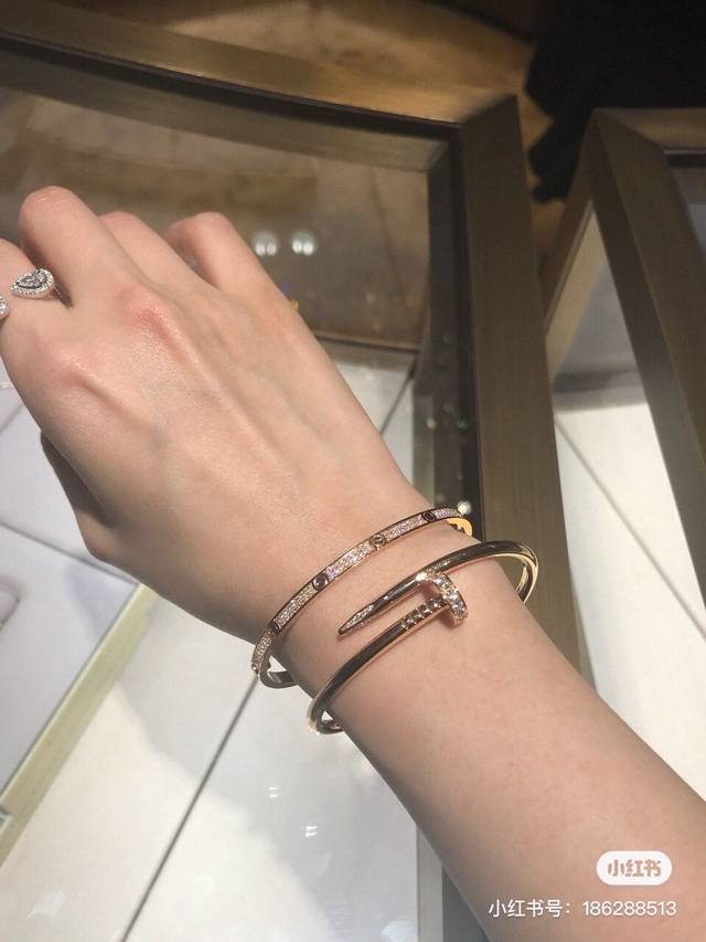 Cartier Juste Un Clou couple's bracelet with diamond-encrusted ends , currently available in boutiques.