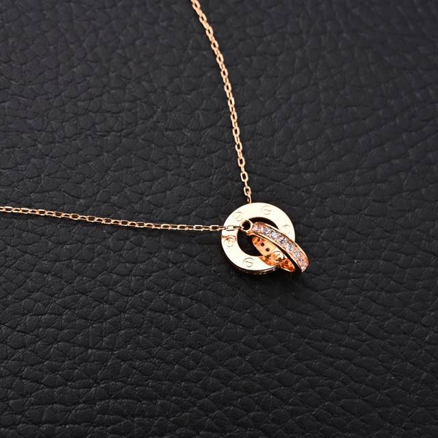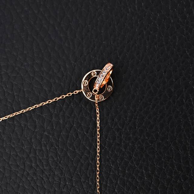 Cartier Love double ring full diamond necklace comes with full packaging, 40 yua