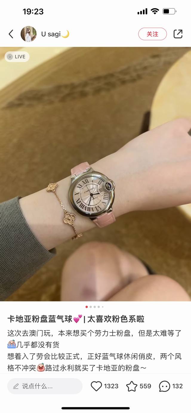 Cartier Pink Blue Balloon Quartz Women's Watch All-steel model with optional st