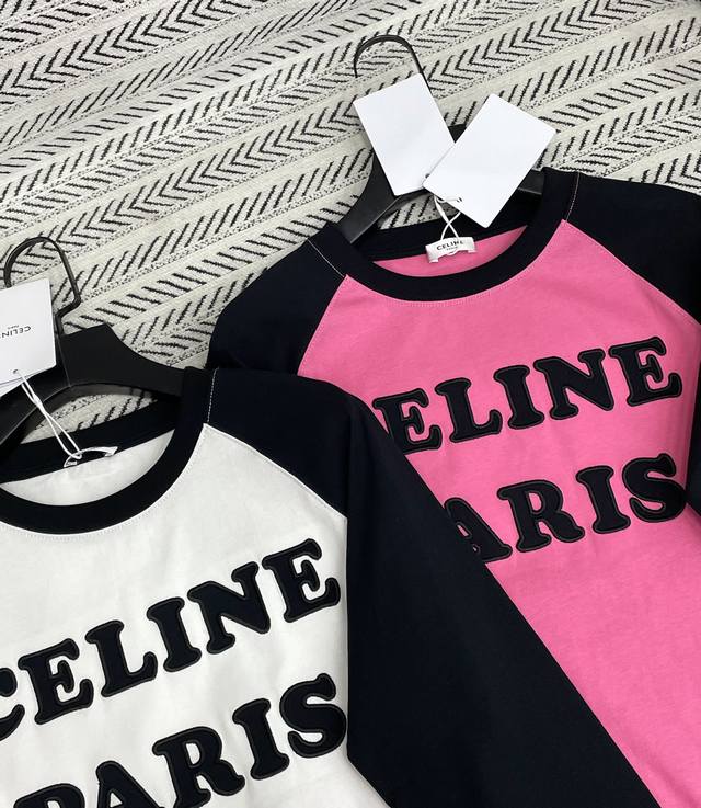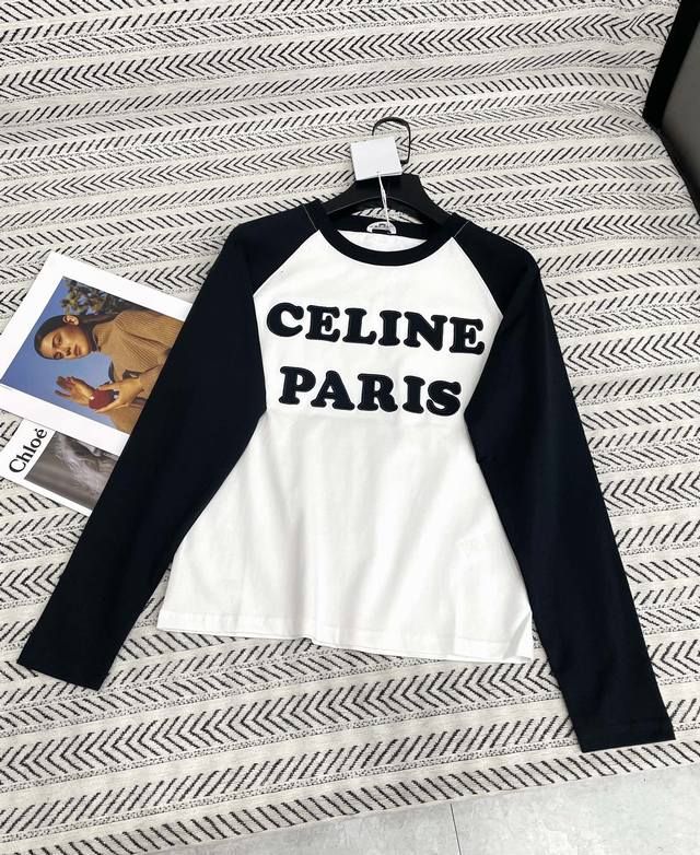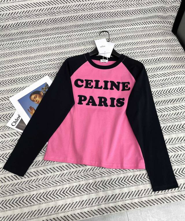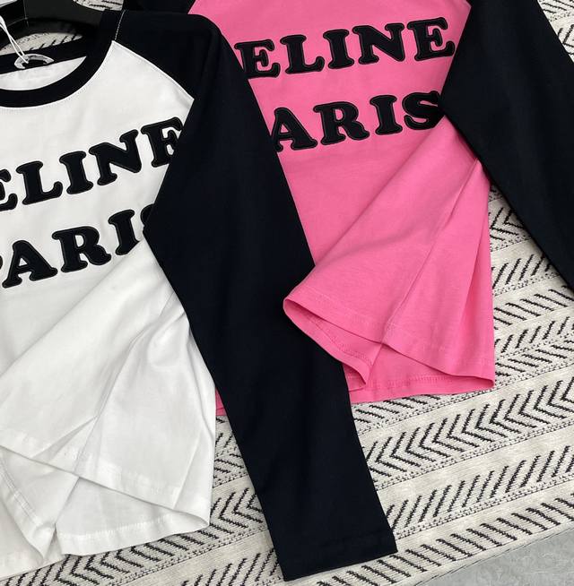 25Ss New autumn and winter style Celine raglan colorblock embroidered letter lon