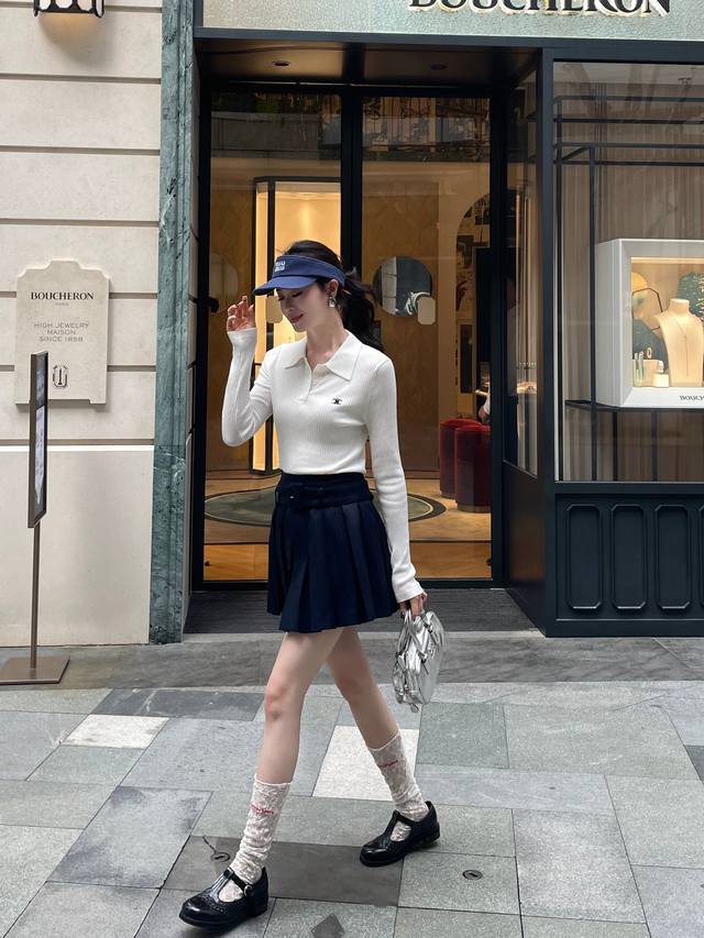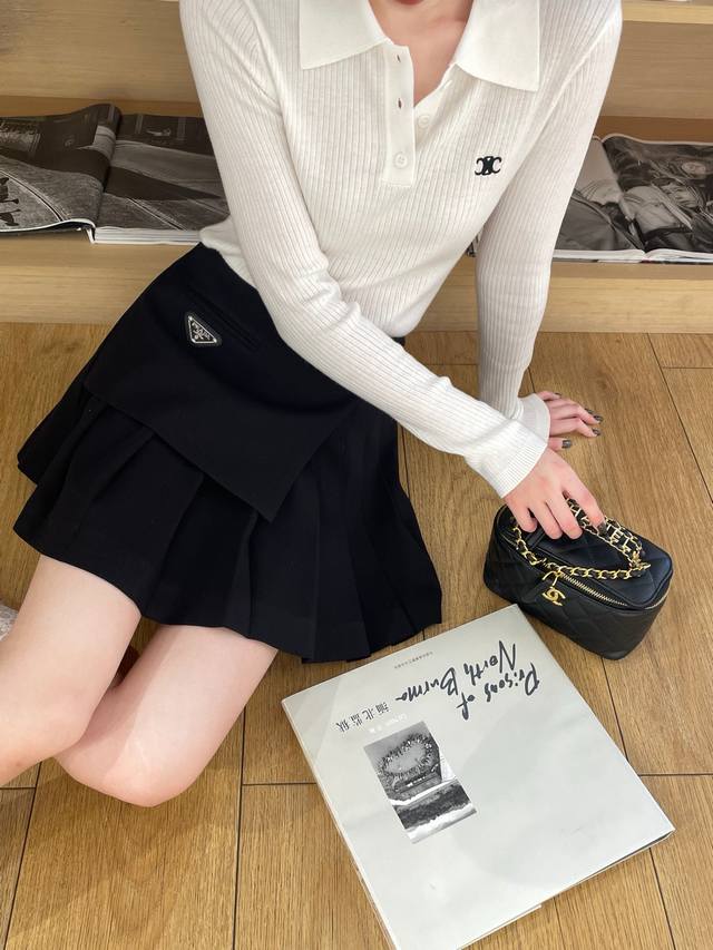 Celine Polo lapel sweater college style long-sleeved knit sweater slim fit and elastic oversized