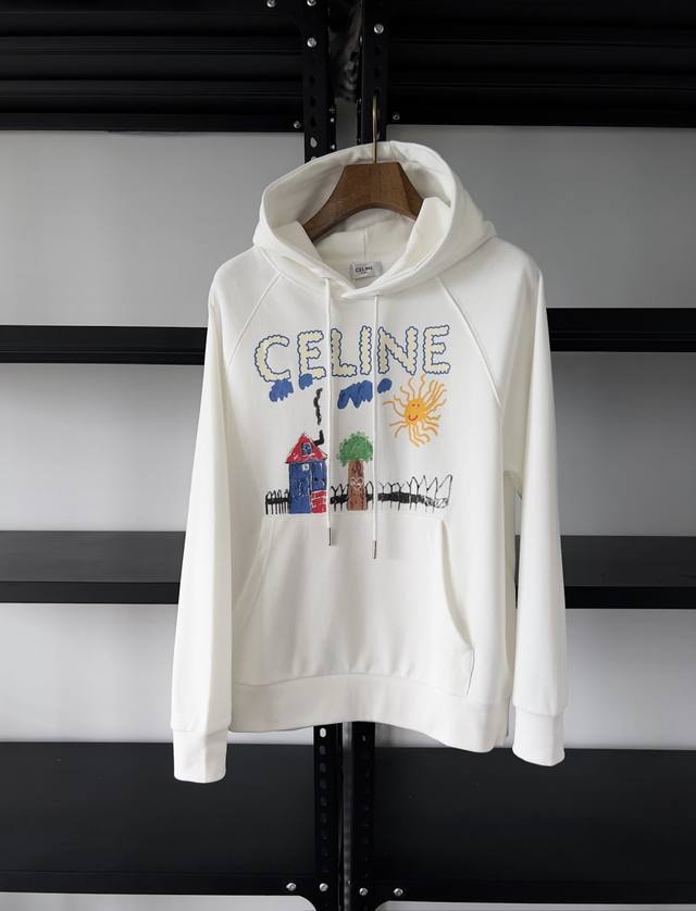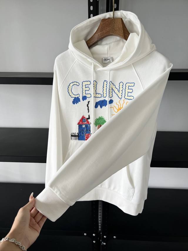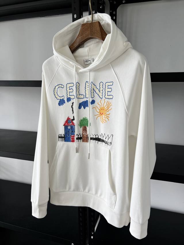 Celine graffiti series printed hoodie. The latest simple gray base of 2025 is in