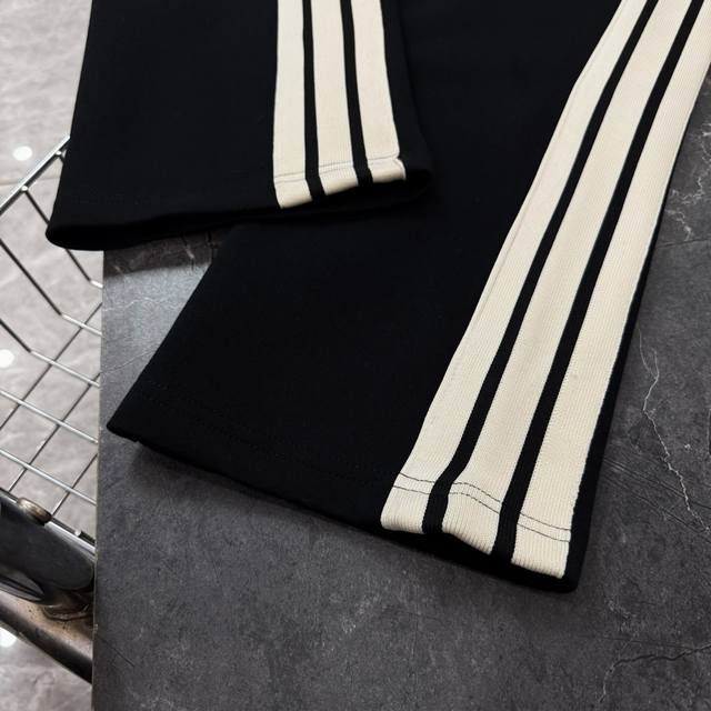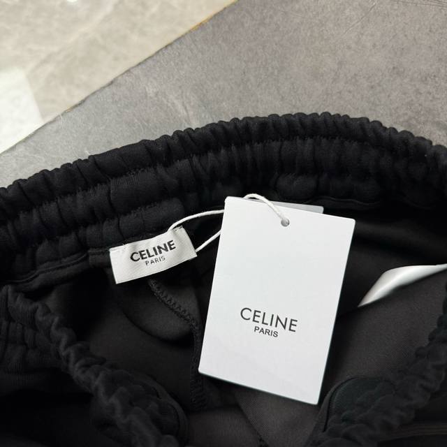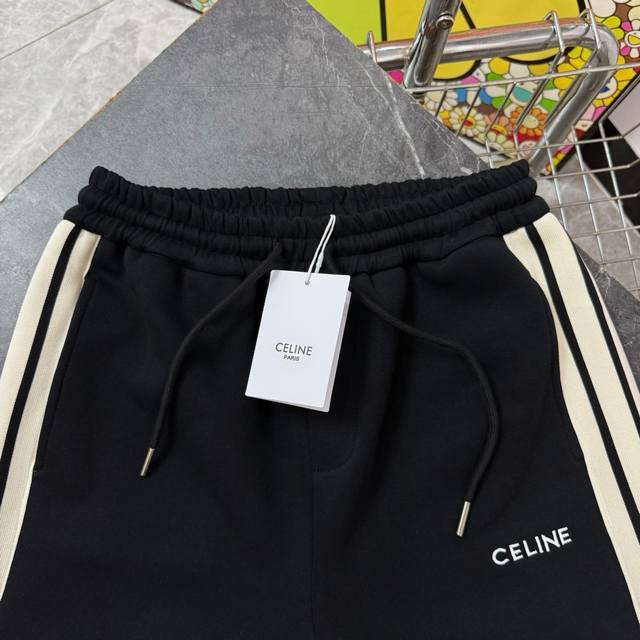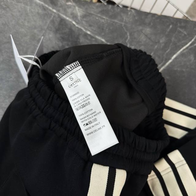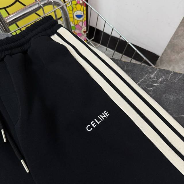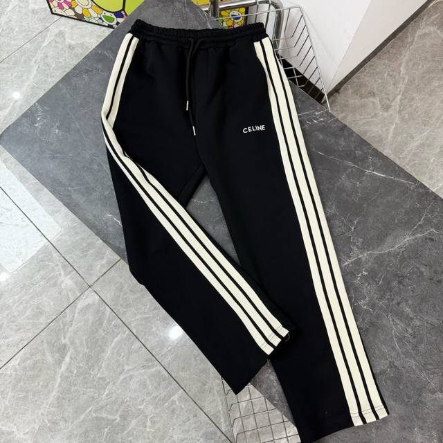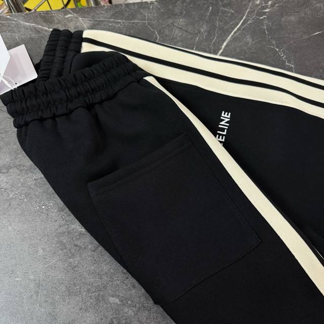 Celine small logo embroidered three-bar striped webbing straight-leg sweatpants