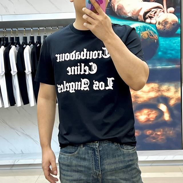 2025 Celine Celine summer new style heavy launch double yarn pure cotton fabric short sleeve spring and summer catwalk style personality exclusive style men and women the same style using imported custom dyed fabrics back collar chain bottom full shoulder no deformation or shrinkage after water the latest brick cabinet in spring and summer synchronous fashion and personality super versatile good-looking style men and women are very suitable for everyone ....
