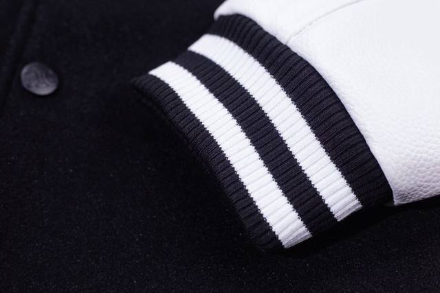 . After a month of preparing the original model, it's finally shipping! I absolutely love it! It looks so cool on me. A Douyin blogger claims this year's new release will become a future trend. Just a quick look at street style reveals celebrities wearing it as a collectible jacket, a must-have for men and women who embrace the luxury lifestyle. Developing the highest-quality version online took a month, and the customization costs are extremely high. Made with imported German flat-knitting machines, the wool jacquard ribbed pattern is custom-woven. The top-grain imported lambskin boasts an unparalleled wrinkle and texture, and the hand-cutting and meticulously crafted leather patchwork are meticulously crafted. The overall look of the garment hinges on this area, showcasing the exceptional craftsmanship and attention to detail. A full set of custom trims ensures the lettering is perfectly reproduced. It exudes a sense of luxury and class! The entire garment is custom-made with meticulous craftsmanship, featuring a perfect combination of towel appliqu
