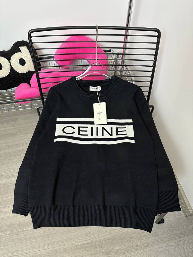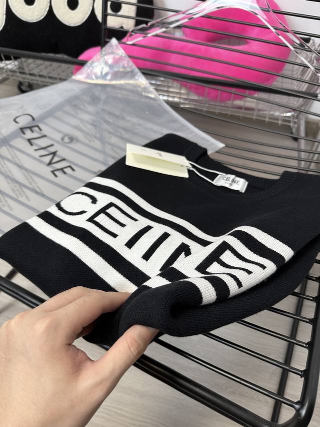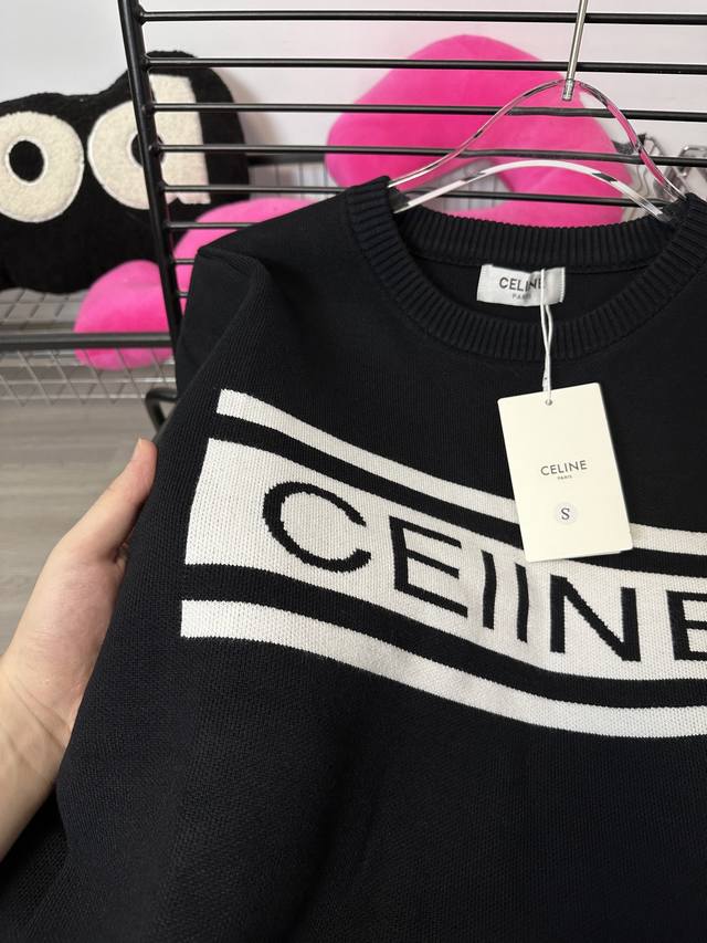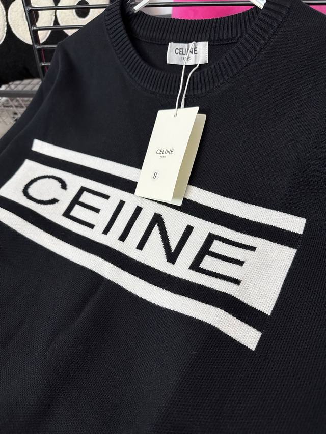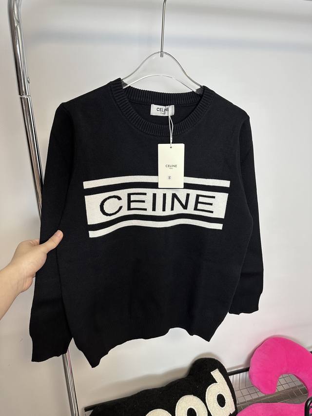 Celine banner classic letter logo knitted round neck sweater Super heavy weight and heavy craftsmanship