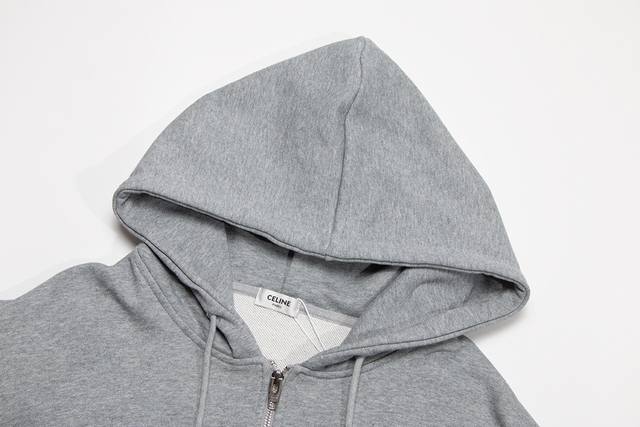 210, high-end custom, top-quality version of the Celine* logo embroidered hooded cardigan, made from exclusive custom 480g original 1:1 double-stranded cotton fabric, custom-woven and dyed in the same vat for uniform color variation, custom 1:1 trimmings, complete with three labels, oversized and relaxed fit, fine workmanship, high elasticity, and no deformation. Unisex, no market version. We specialize in high-end, premium products. Comparisons are welcome.