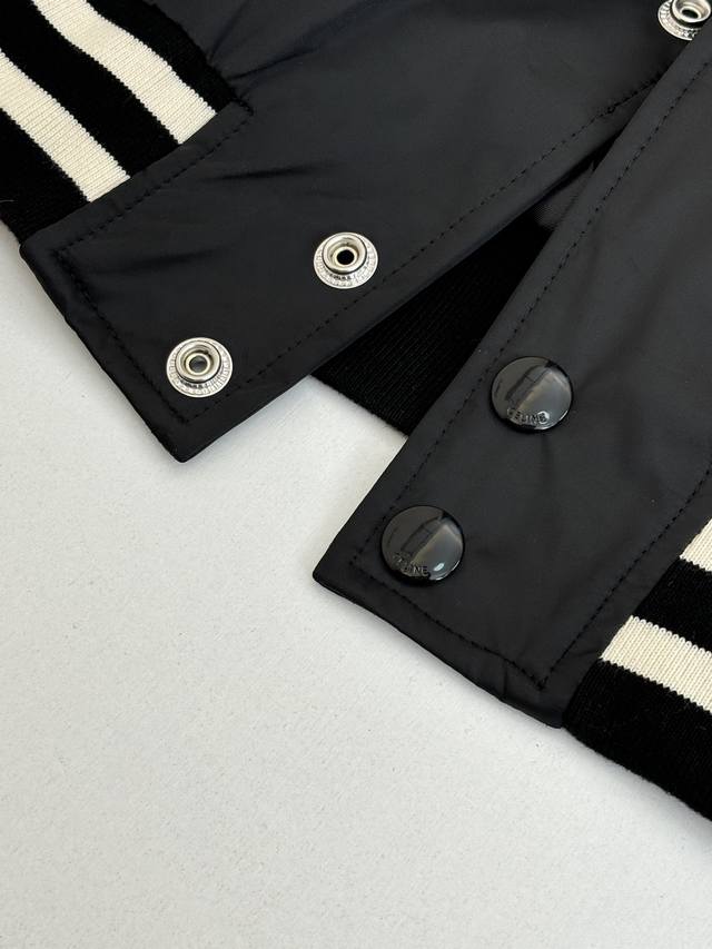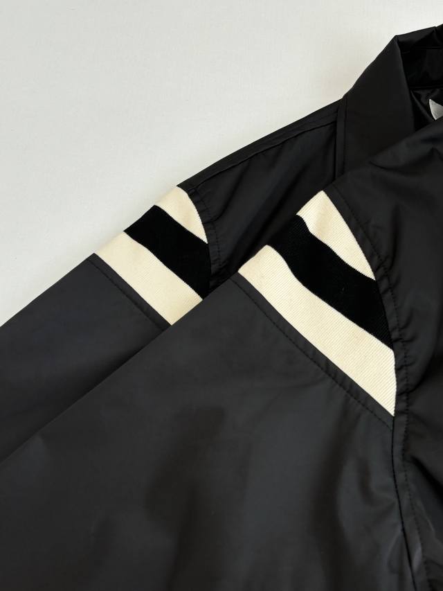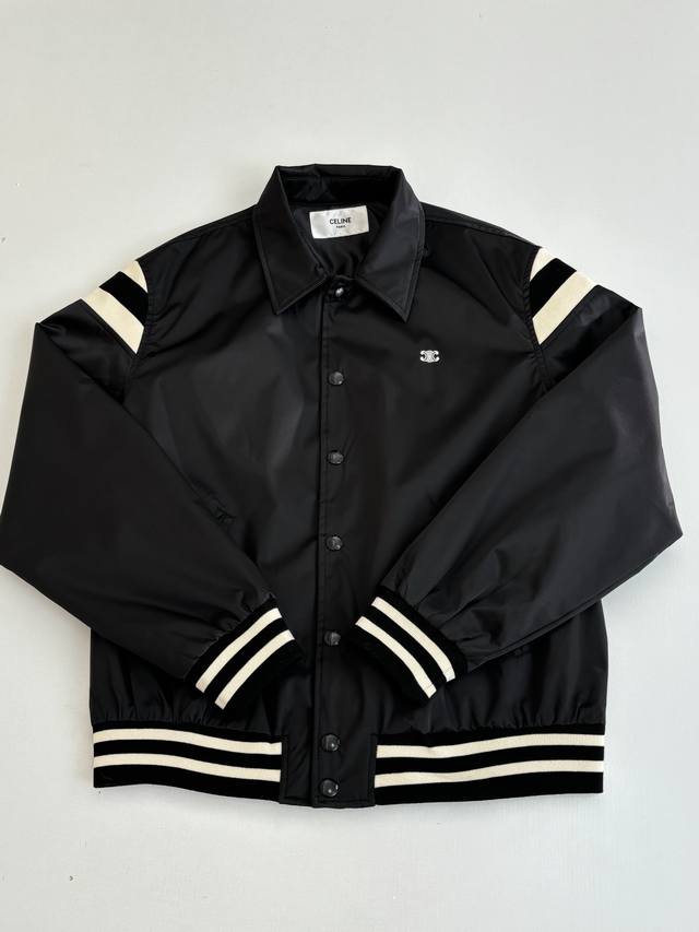 Celin* Celine Striped Color Block Arc de Triomphe Embroidered Jacket DDD Custom Ink-Color Satin Composite Woven Silk Utilizing imported machine embroidery technology, advanced computer control systems and precision mechanical parts achieve high precision in the Arc de Triomphe embroidery process, resulting in smooth and delicate lines. The template machine's preset templates guide the precise position, shape, and size of the opening, ensuring high-quality opening effects DDD Size: 48 50 52 54 DDD