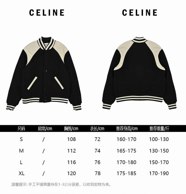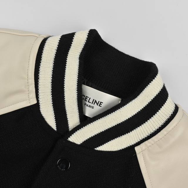 / Celine 24Ss new wool and leather patchwork baseball jacket Unisex style Item num