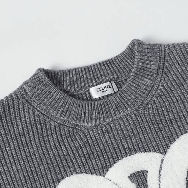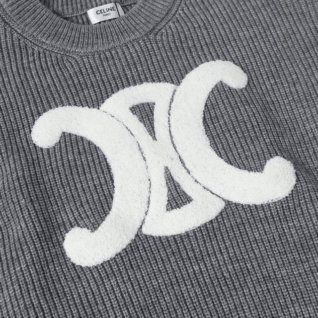 Celine 25Fw Early Autumn New Arrival Arc de Triomphe Logo Wool Sweater (Exclusive Yb Development! High-Quality Production! 3D Terry Cloth Embroidery Arc de Triomphe, Heavy Weight, 100% Imported Wool Yarn, Unbeatable Quality! A must-have for discerning customers! Classic fit, relaxed retro style, youthful and preppy look, versatile and stylish! A must-have high-end item for sophisticated women! The cut is flattering and incredibly slimming! Highly recommended, a personal favorite! Color: Navy Grey (Sizes: S, M, L)