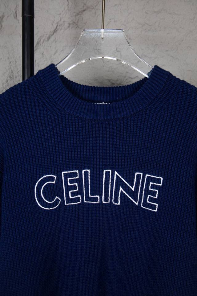 Celine 25Fw Embroidered Letters L0G0 Crew Neck Sweater Celine's latest logo swea