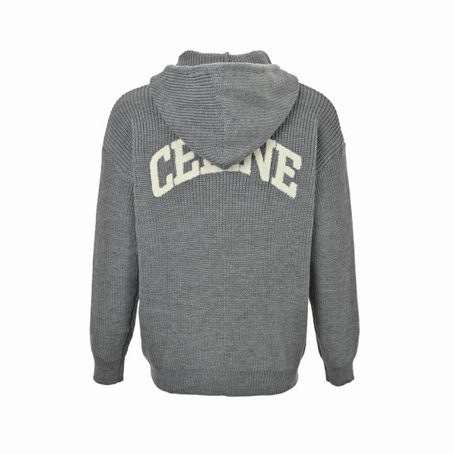 Celine Arc de Triomphe Back Letter Towel Embroidery Hooded Sweater Fabric: Woven from 55% Merino wool yarn and cotton yarn. The finished product is three-dimensional, soft to the touch, and not itchy against the skin. Accessories: The drawstring closure features electroplated lettering, faithfully replicating the brand logo. Craftsmanship: The embroidery uses a towel embroidery technique, employing cashmere yarn to achieve a 1:1 replica of the original details. The garment undergoes a washing process to remove surface impurities from the wool, enhance the feel, and solidify the shape. Features include: Triomphe embroidery, a relaxed fit, an adjustable drawstring hood, a metal band engraved with "Celine Paris," a kangaroo pocket, and ribbed trim. Accessories: Custom wash label, custom drawstring closure, custom towel embroidery. Colors: Black, Gray. Size: Xs-L.