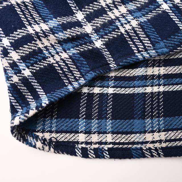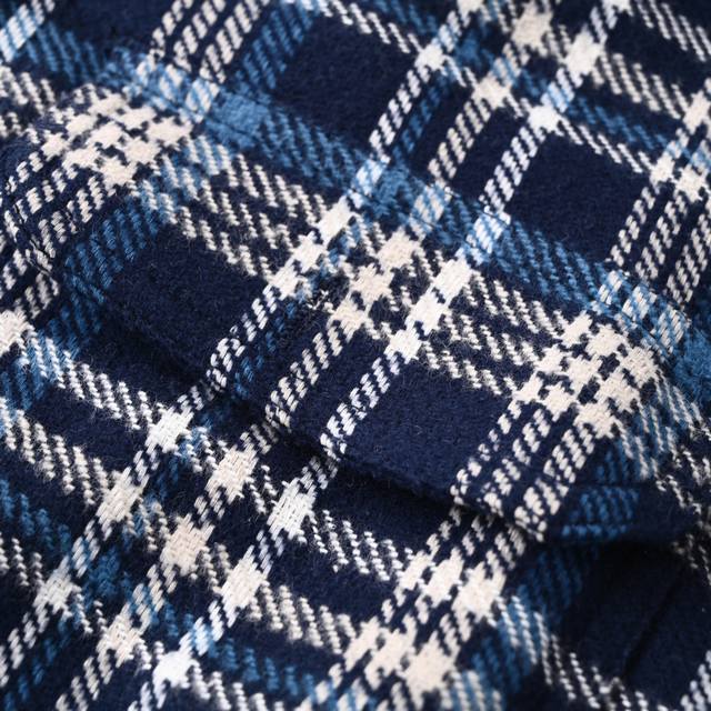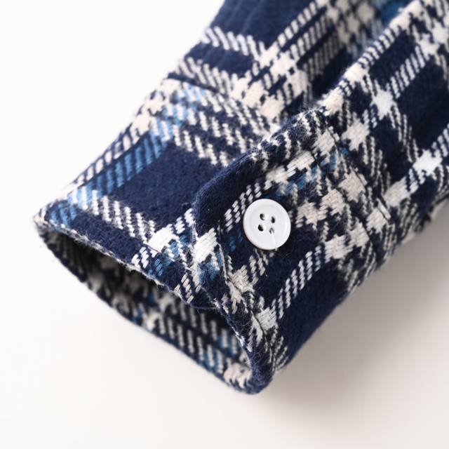 ) Custom 1:1. Made of pure cotton yarn-dyed brushed plaid fabric, using imported machine embroidery technology and an infrared positioning cutting bed. The infrared transmitter and receiver achieve precise material positioning, ensuring high-precision cutting and plaid alignment. Material waste is extremely high, averaging 15 points of waste per piece, time-consuming and labor-intensive. The attention to detail is evident. Side-folding and embedded stitching technology ensures smooth, neat, and clean workmanship. Template machine opening guides the position, shape, and size of the opening, ensuring high-quality opening. Loose fit (