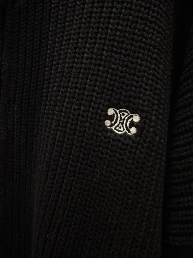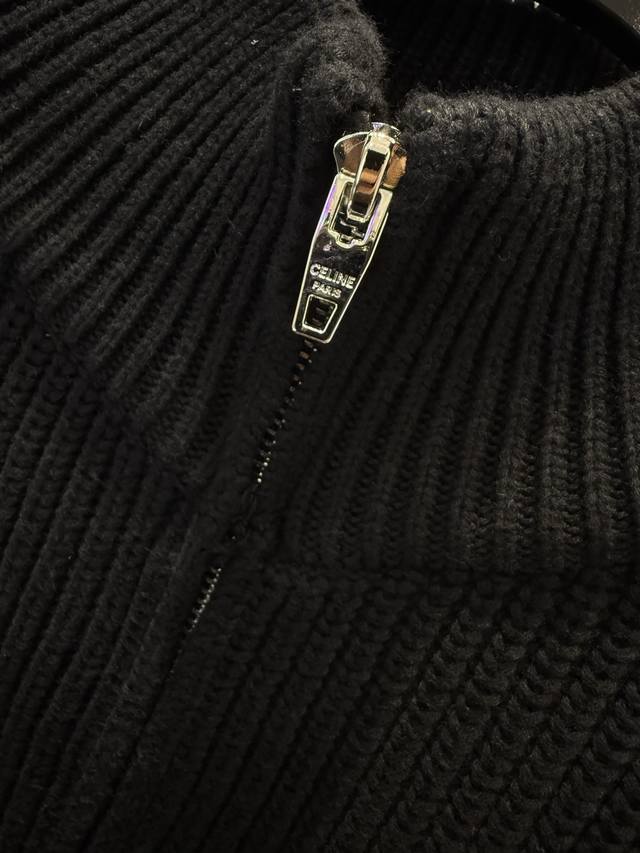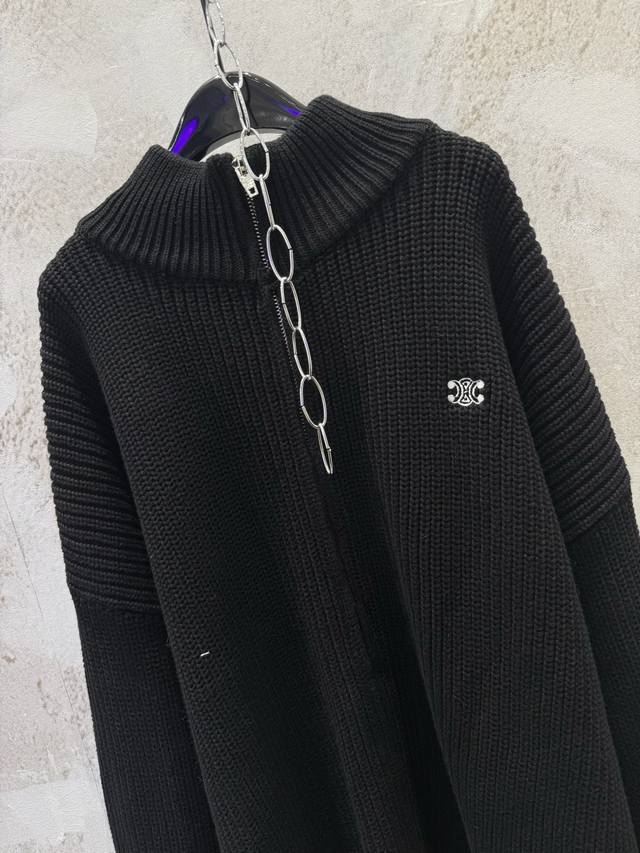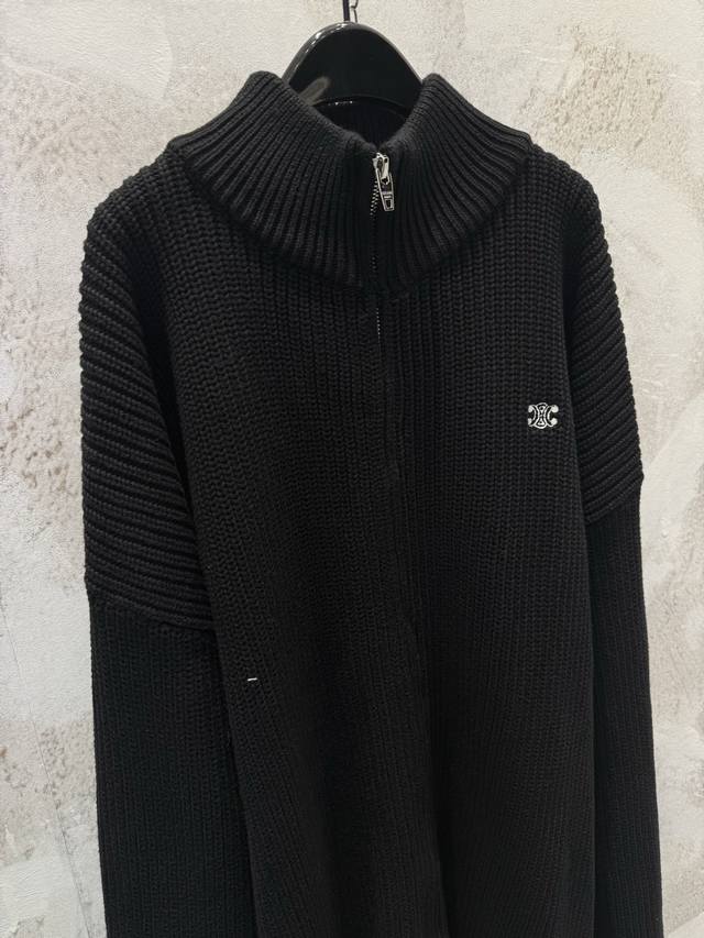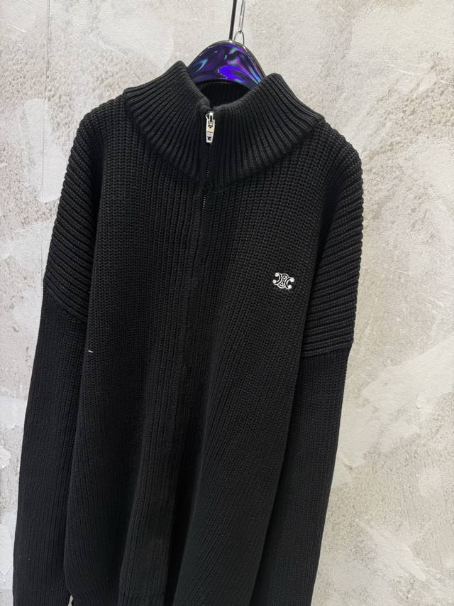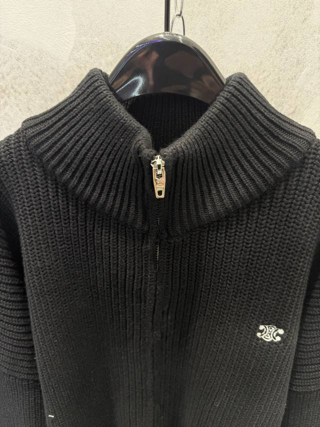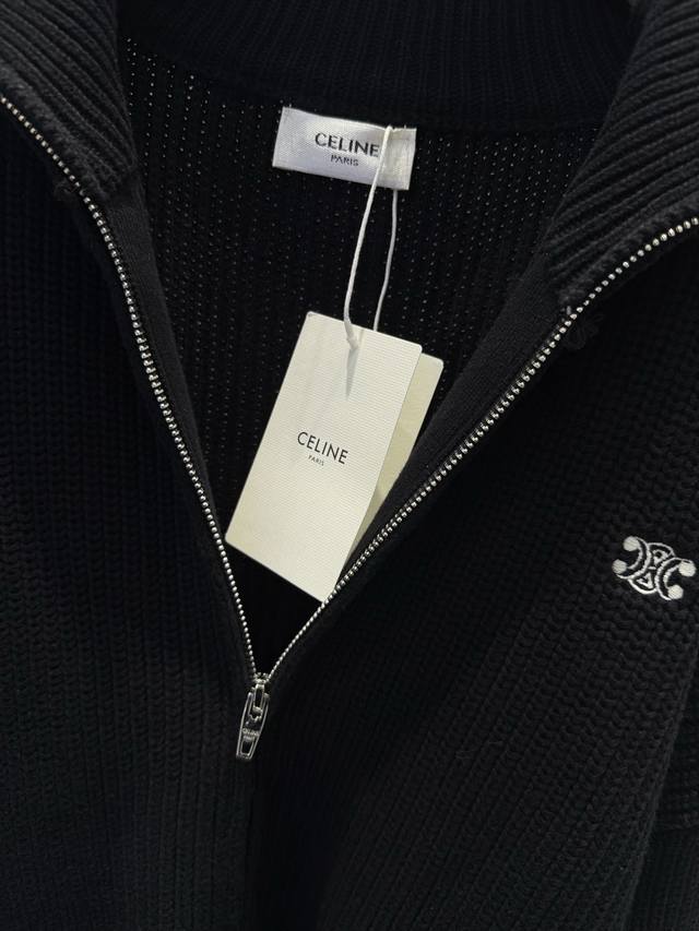Celine Arc de Triomphe Embroidered Logo Knit Cardigan Sweater Jacket DDD Custom-woven, ultra-soft wool blend, featuring the iconic Celine Arc de Triomphe logo on the front, clean and flowing zipper lines, a harmonious blend of sophistication and dynamism, subtly showcasing taste DDD Utilizing imported machine embroidery technology, employing an advanced computer control system and precision mechanical components to achieve high precision in the Arc de Triomphe embroidery, resulting in smooth and delicate lines Ddd Sizes: Xs SML DDD