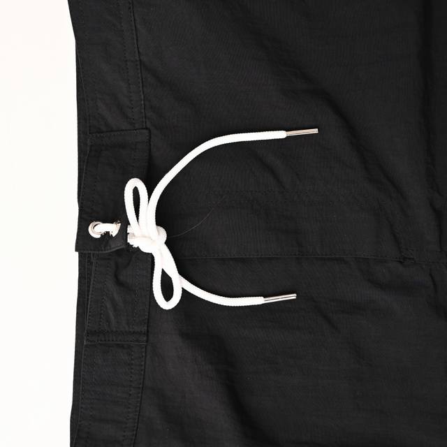 The fabric is made of custom nylon with high elasticity. The hem is printed using offset printing technology. The pattern is engraved on the screen, and then the ink is pressed into the fabric through pressure and extrusion. The waist is equipped with an adjustable drawstring and the metal hoop is engraved with Celine Paris.
