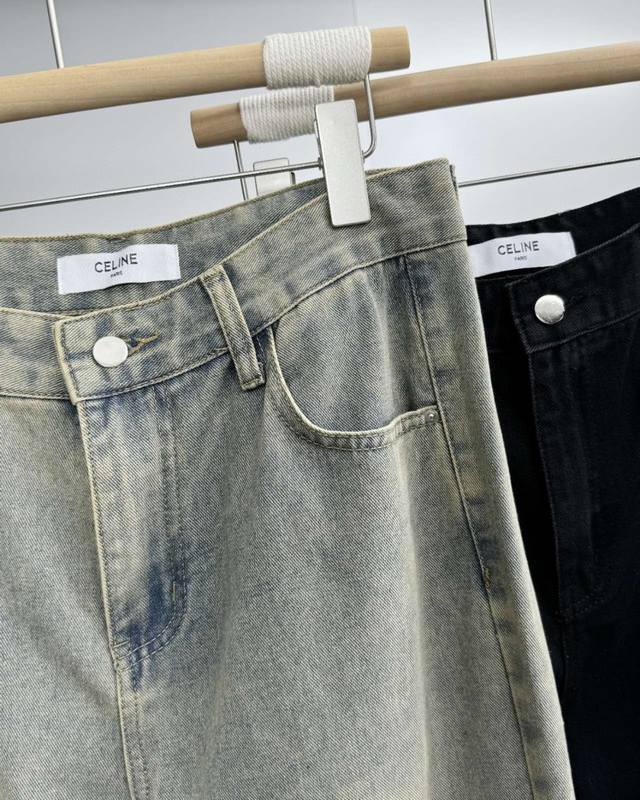 Celine Celine overseas limited edition solid color jeans, same style for men and women, the latest style of 25, simple and generous daily commuting first choice, higher recognition, loose silhouette, both men and women can control, heavy washing, different from the junk version in the market, very good texture, full of cotton, excellent physical texture!
