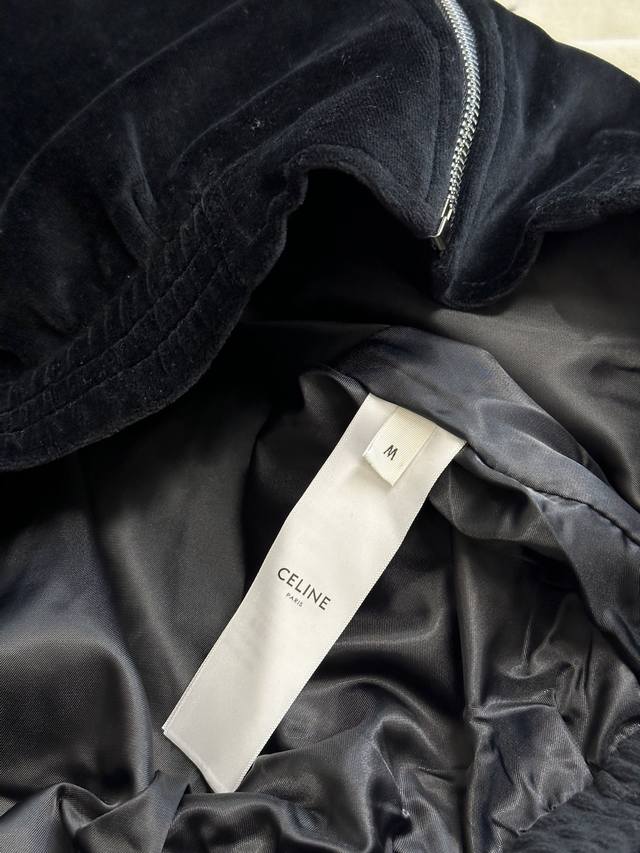 Celine Embroidered Velvet Jacket DDD Made with custom cotton-polyester blend jacquard velvet, the black and beige tones create an endless elegance and charm. Exquisite Celine monogram embroidery adorns the chest, conveying Celine's consistent elegance and sophistication in a simple yet powerful way. DDD Utilizing imported machine embroidery technology, employing advanced computer control systems and precision mechanical components, the Celine monogram embroidery is executed flawlessly. DDD Ergonomic three-dimensional tailoring returns to traditional craftsmanship, employing techniques such as segmentation, folding, gathering, and stretching