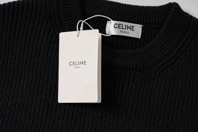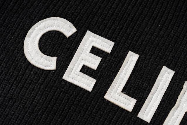 Celine Fall/Winter Letter Crew Neck Knit Sweater. Fabric: Imported wool, hand-stitched cuffs for a soft, smooth, and comfortable feel. Jacquard: Large letters. Accessories: Main label, washing label, and hangtag are all custom-made. Size: SL.