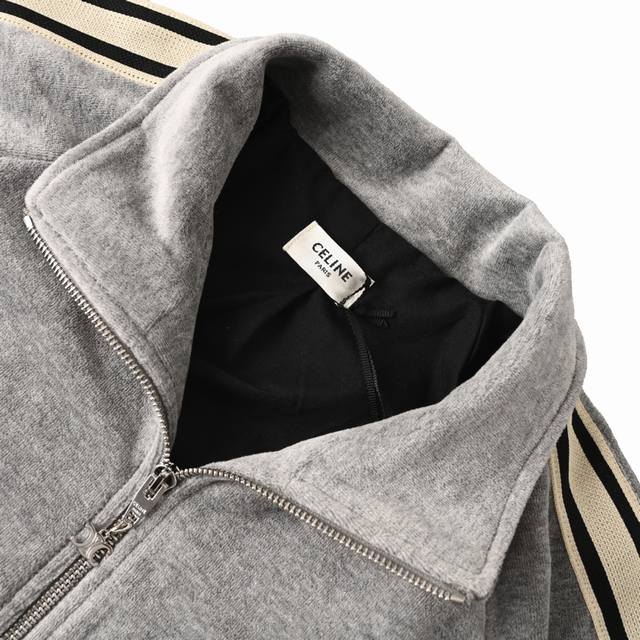 Celine Grey Arc de Triomphe Embroidered Jacket Set (Ddd) Made with custom double-layered velvet cotton satin, featuring a sophisticated grey base with contrasting trim. Utilizing imported machine embroidery technology, the fabric undergoes thorough washing for enhanced feel and texture, preventing deformation, shrinkage, and fading, maintaining its long-lasting beauty. Custom accessories, fitted silhouette (Ddd). Size: S-XL (DDD)