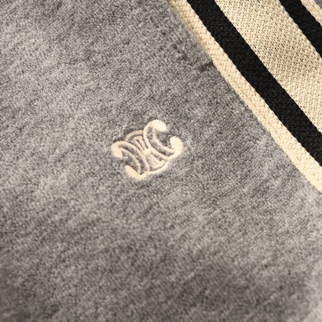 Celine Grey Arc de Triomphe Embroidered Trousers (Ddd) Made with custom double-velvet misty cotton satin, featuring a sophisticated grey base with contrasting side stripes. The straight, draping cut utilizes imported machine embroidery technology. The fabric undergoes thorough washing for enhanced feel and texture, preventing deformation, shrinkage, and fading, ensuring long-lasting beauty. Custom-made accessories and a fitted silhouette (Ddd). Size: S-XL (DDD)