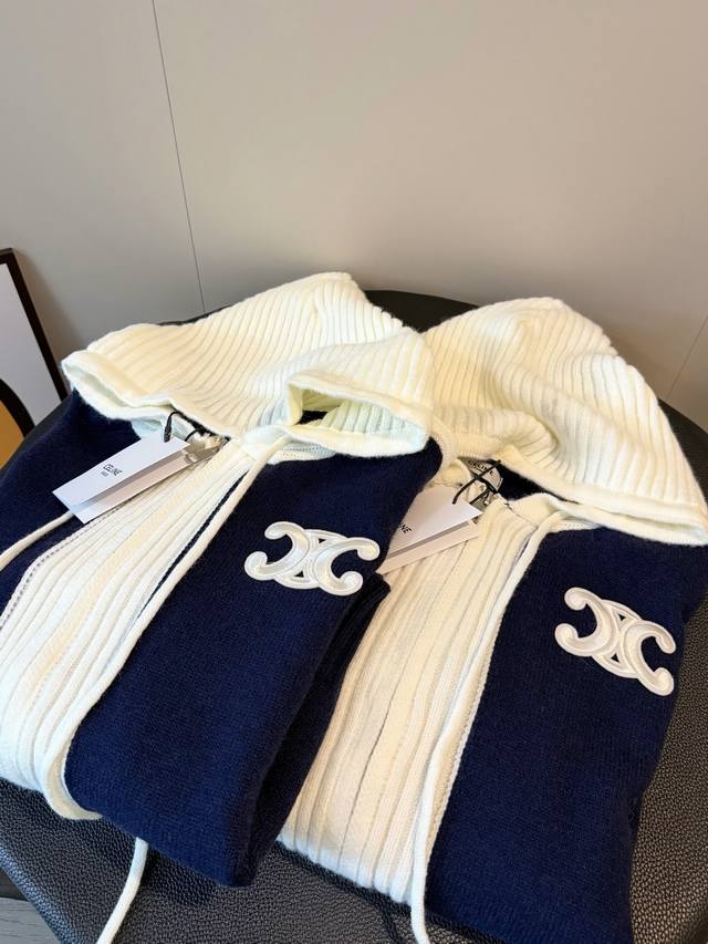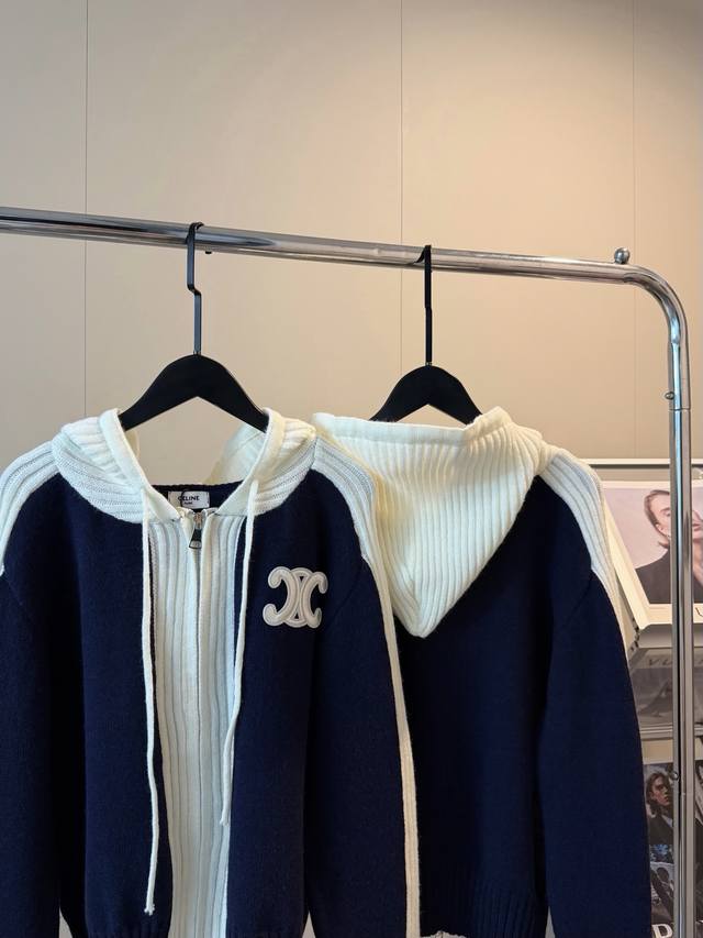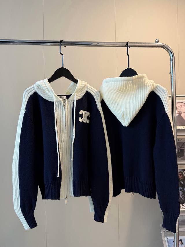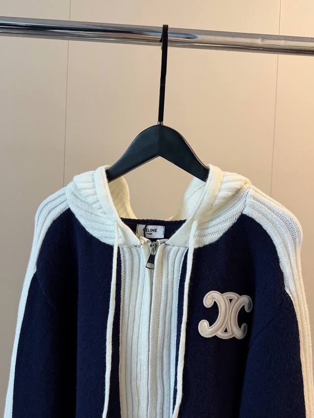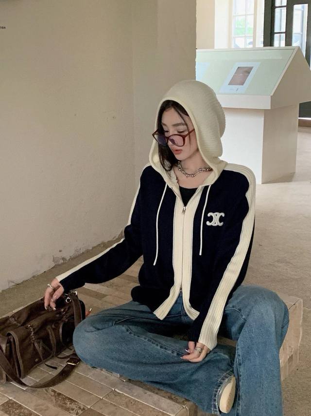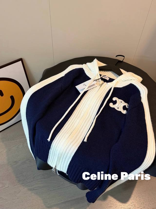 Celine New Arc de Triomphe Embroidered Logo Short Zipper Sweater Cardigan
