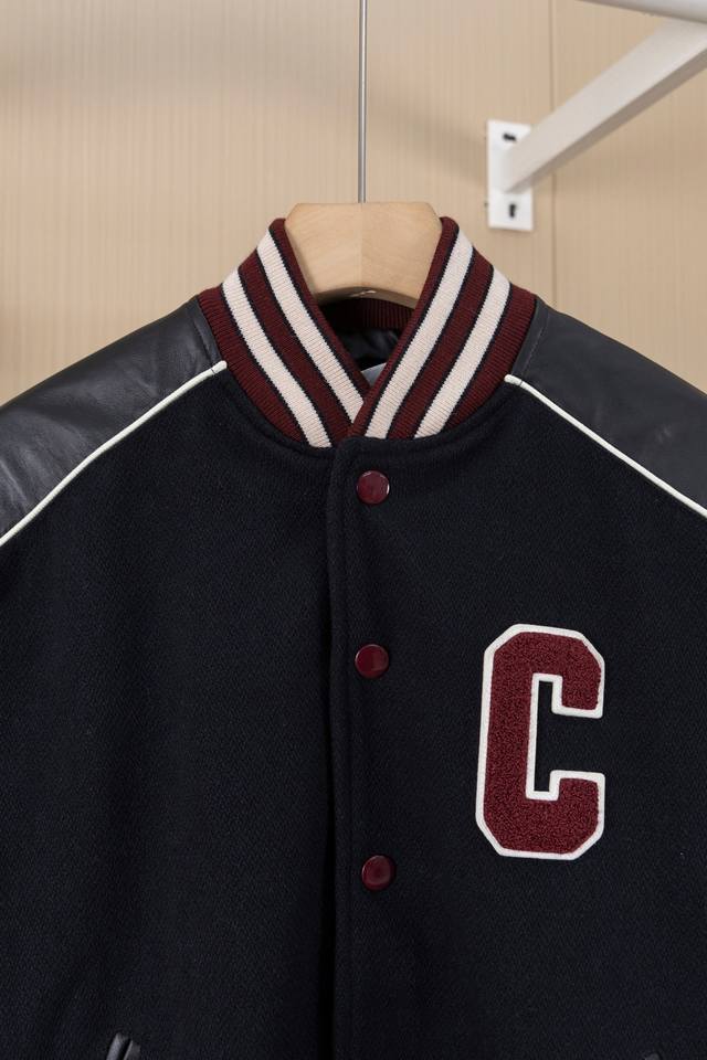Celine towel embroidered large C patchwork leather Teddy baseball jacket, cashmere patchwork leather baseball jacket version of the crisp and stylish small stand collar design is also very much liked, the touch is also very comfortable. The cuffs are all custom-made with threaded knitting machines. The back is super precise embroidery and looks great on the upper body. Men and women can easily control